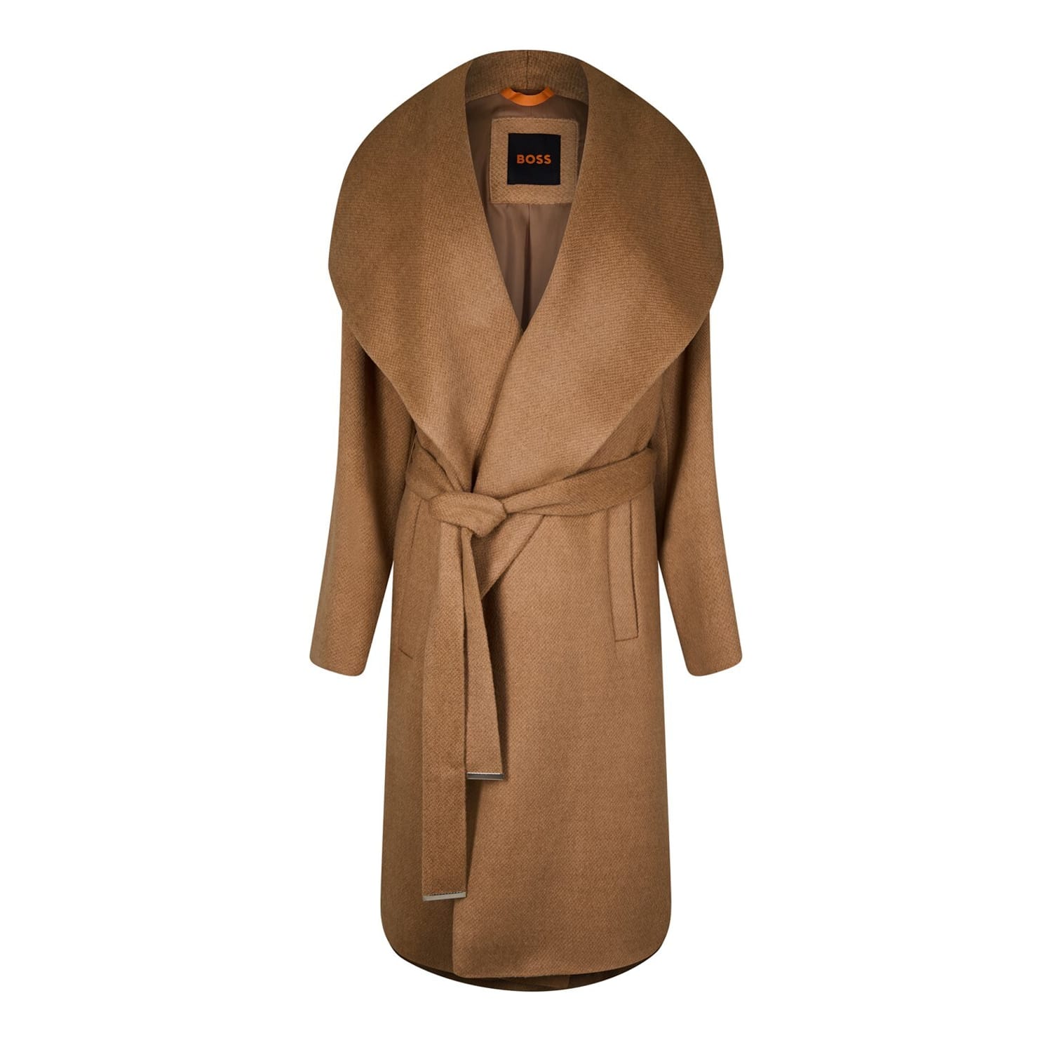 Discover the elegance of the Boss wrap coat, a refined jacket featuring a shawl neck and relaxed fit. The solid pattern is complemented by a discreet logo embellishment. Designed for style and comfort, it boasts a tie closure for a secure and sophisticated finish. Ideal for those seeking a blend of fashion and functionality. -