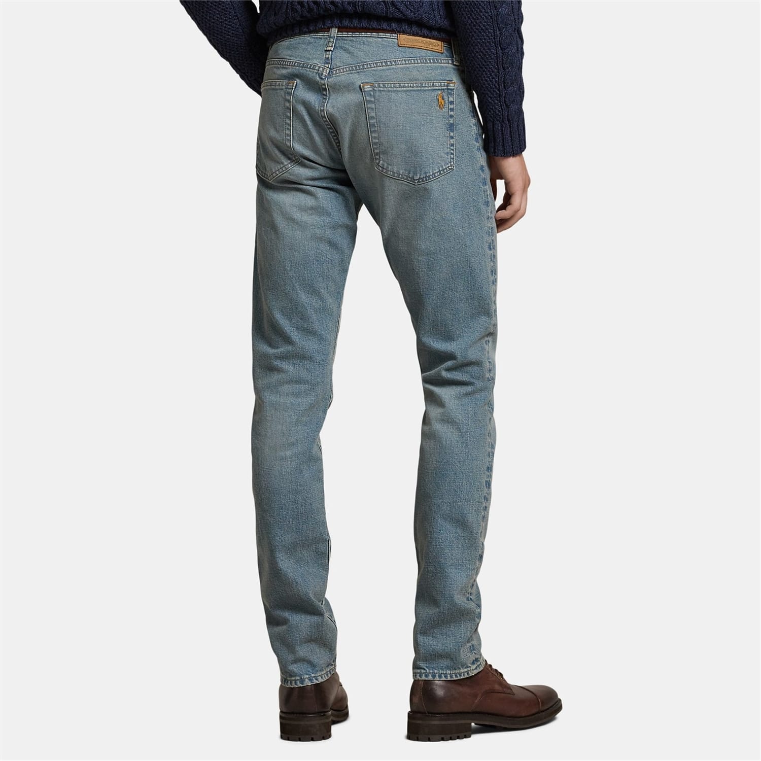 - The signature embroidered Pony on the back right pocket and the leather logo patch on the back right waist create brand recognition.