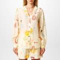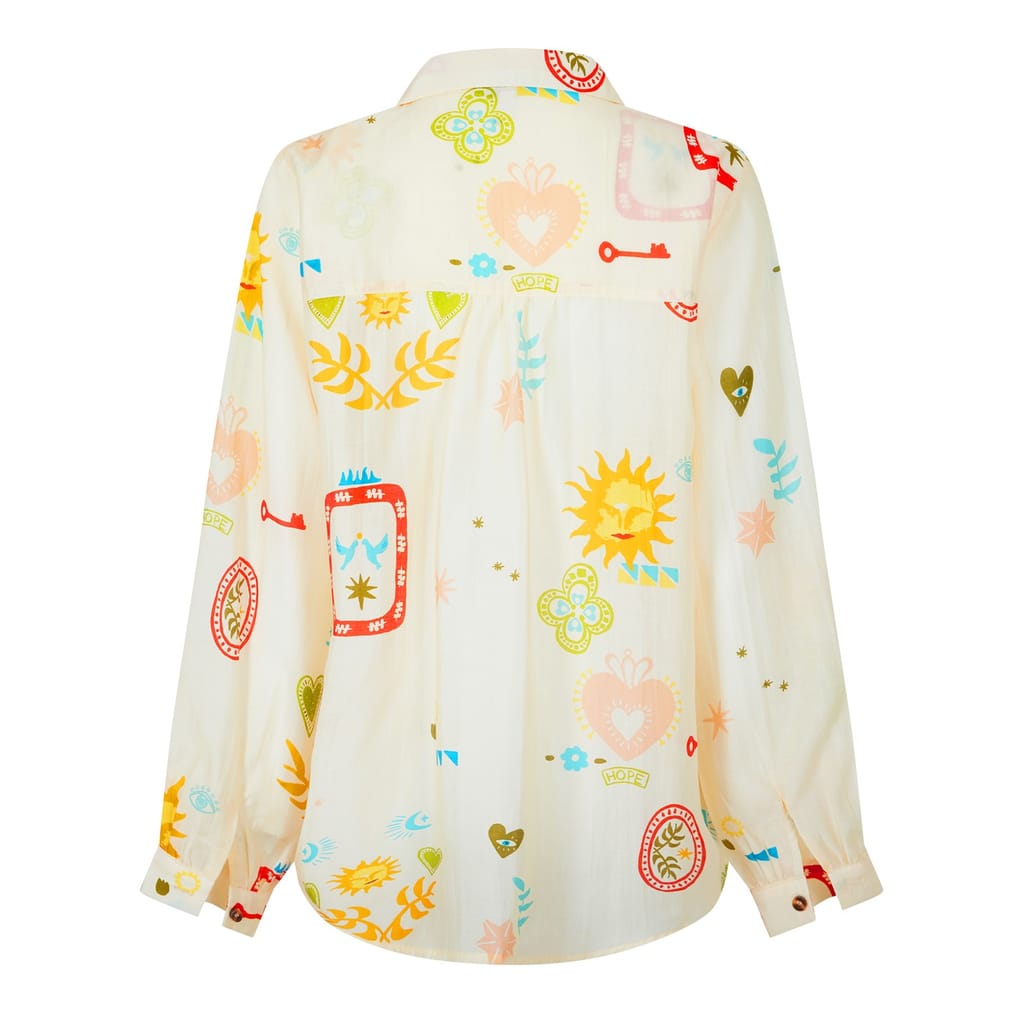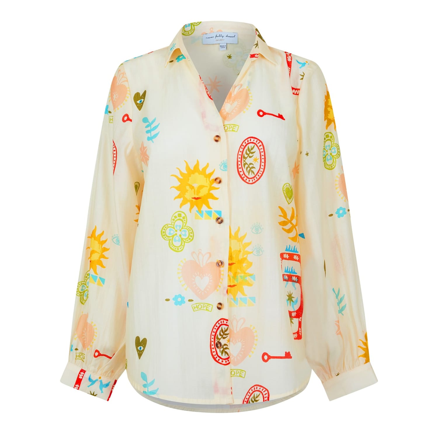 This Never Fully Dressed shirt is a stylish addition to any wardrobe. Featuring a graphic print and long sleeves, it showcases a regular fit with a shirt collar and button closure. The dress shirt style and rounded cuff add a touch of sophistication, making it perfect for various occasions. -