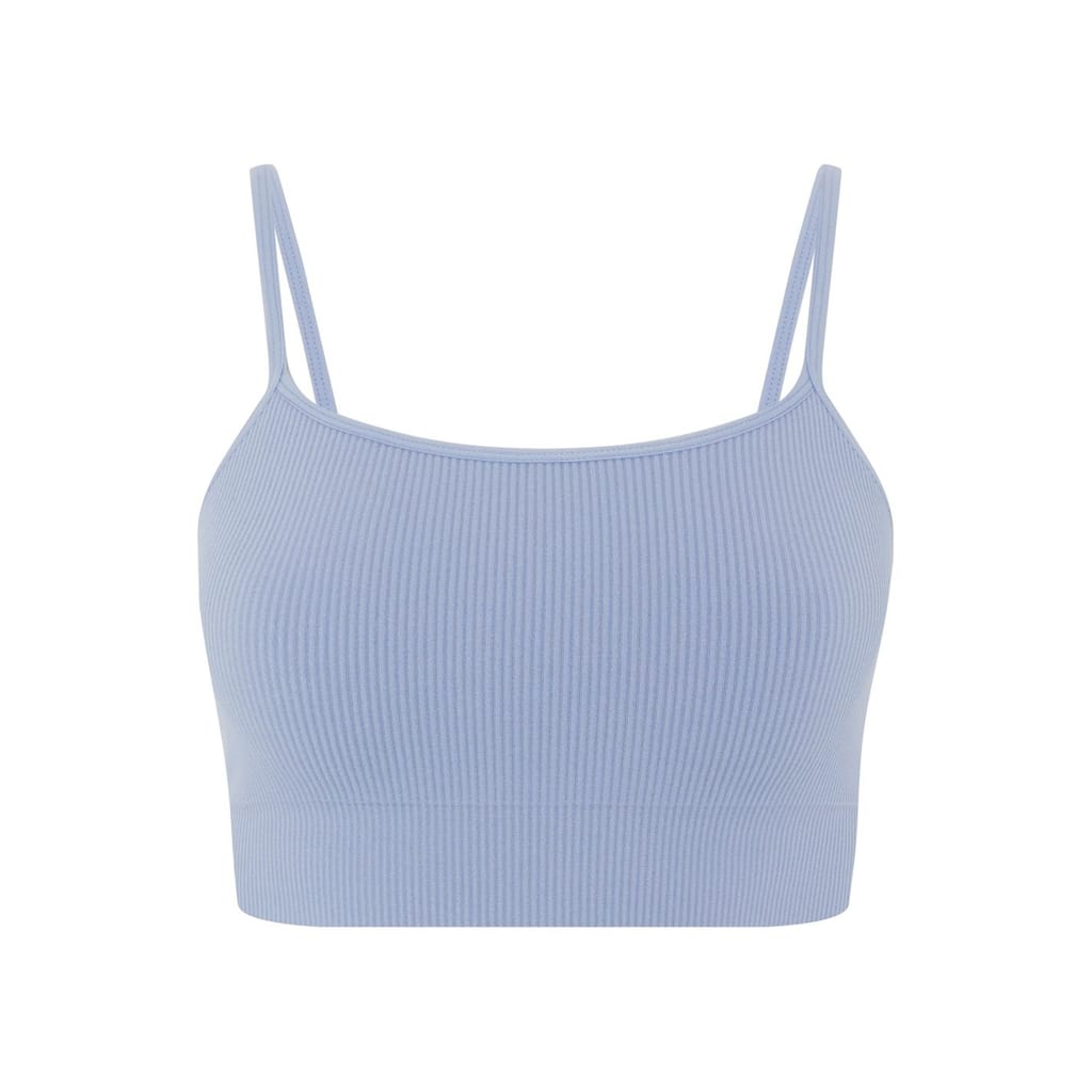 Stay active in style with this HIIT sports bra. Designed for sporting activities, it features a ribbed pattern and a spaghetti strap neckline. The sleeveless, slim-fit top is cropped for a modern look. -