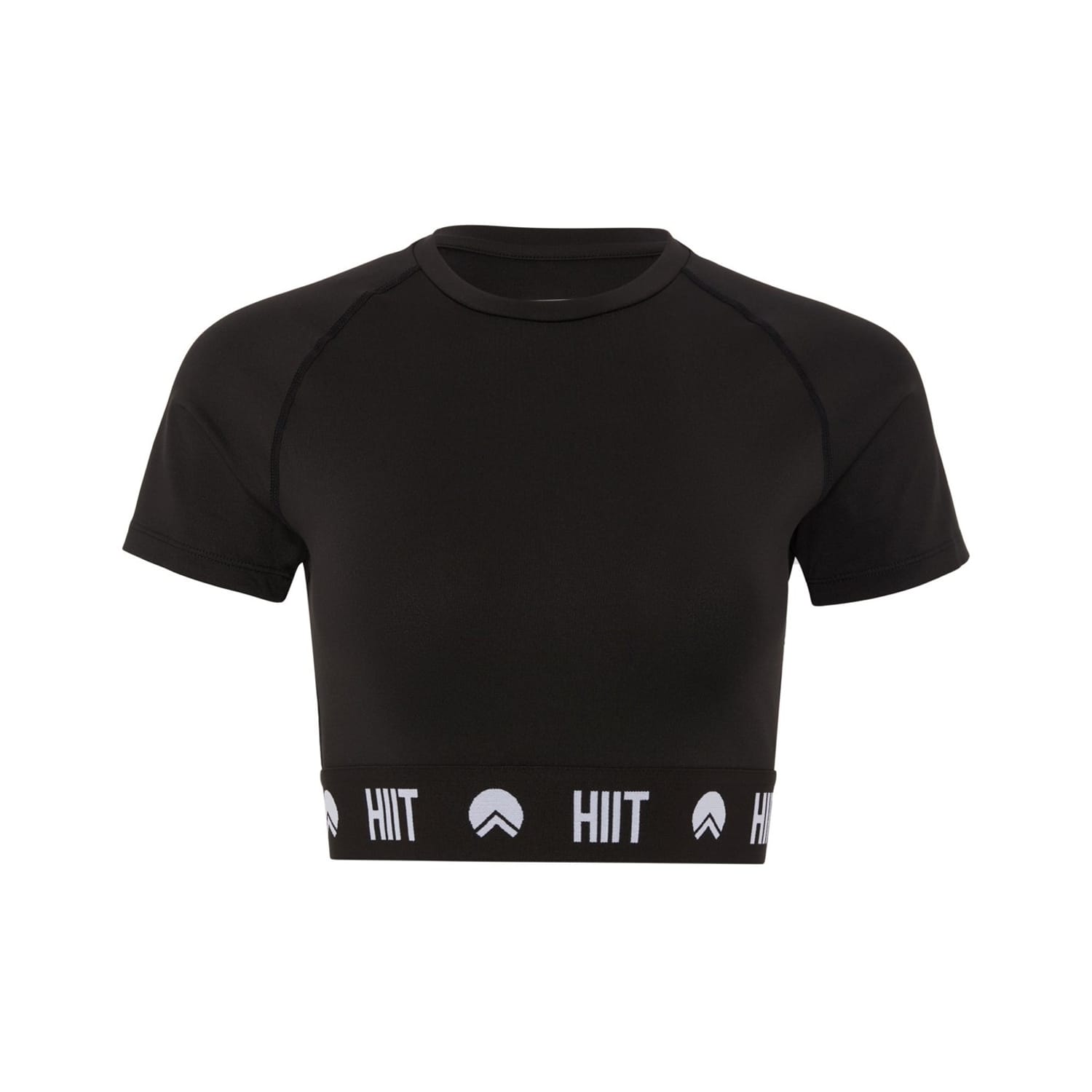 This HIIT cropped t-shirt is designed for a modern athletic look. Featuring a crew neck and short raglan sleeves, it offers a sleek slim fit. The solid pattern and subtle logo embellishment add a touch of style, making it a versatile addition to any wardrobe. -