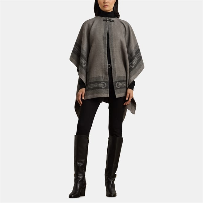 Discover the stylish poncho jacket by lauren by ralph lauren. This jacket features a unique geometric pattern and a buckle closure, offering both elegance and practicality. A perfect addition to your wardrobe, it combines distinctive style with the signature quality of lauren_by_ralph_lauren. -
