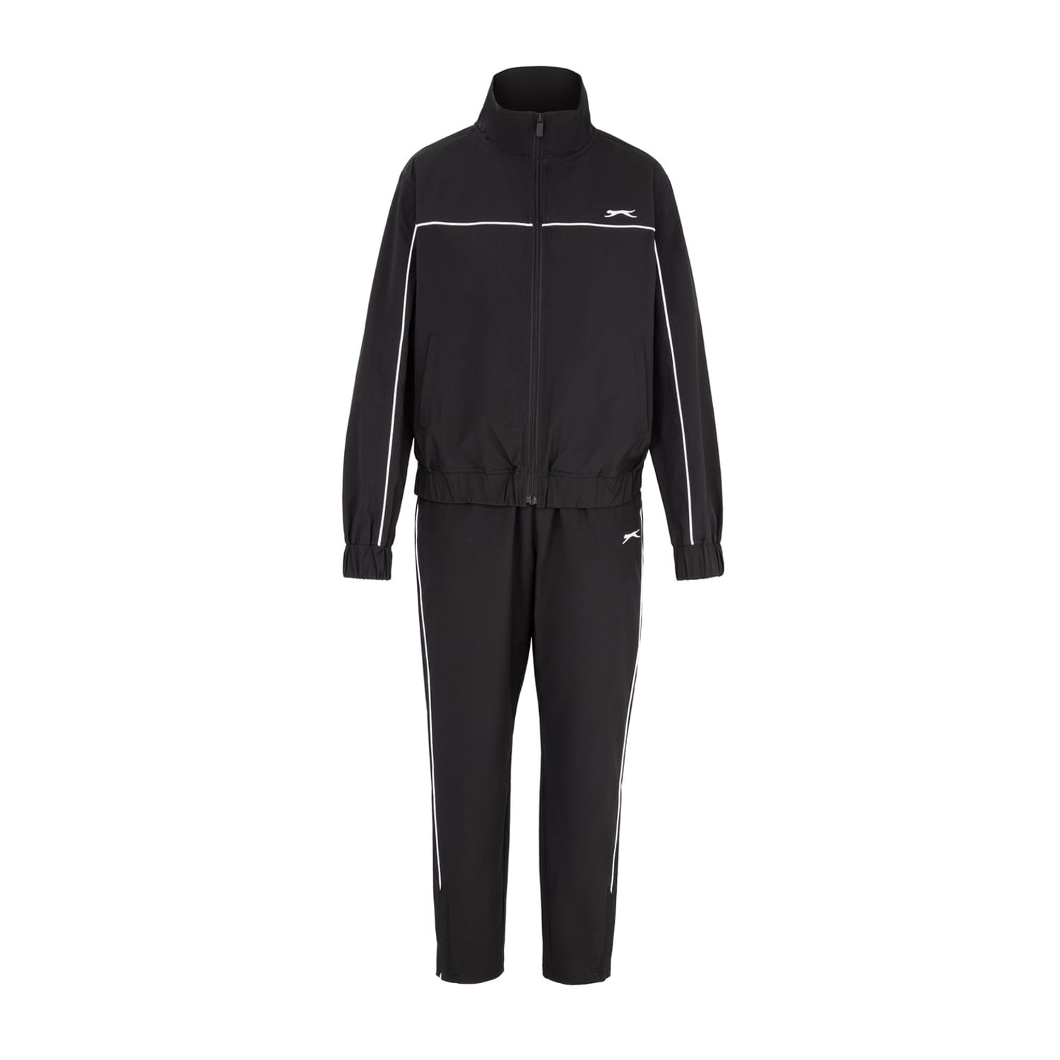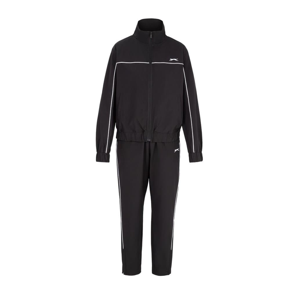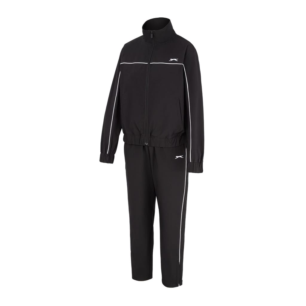 Elevate your activewear collection with the Slazenger full track suit. This set features a high neck, long sleeve sweatshirt with a plain sleeve design, complemented by track-style bottoms. The contrast detailing and logo embellishment add a touch of style to this practical ensemble, perfect for athletic pursuits. Crafted for comfort and functionality, this set is a versatile addition to your wardrobe. -