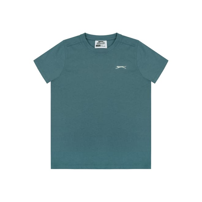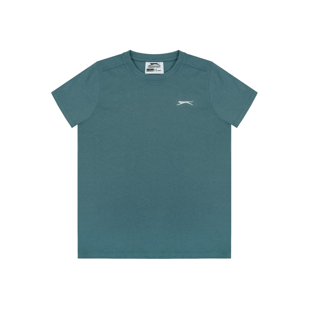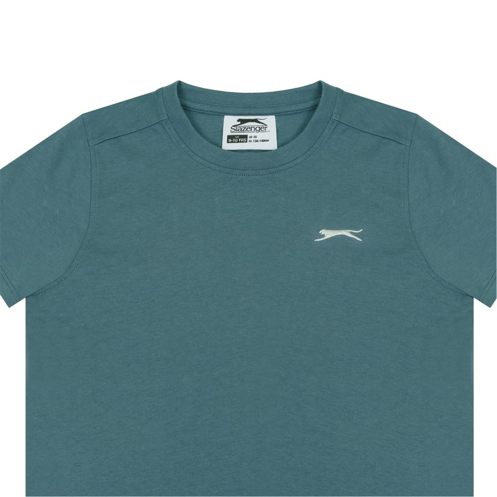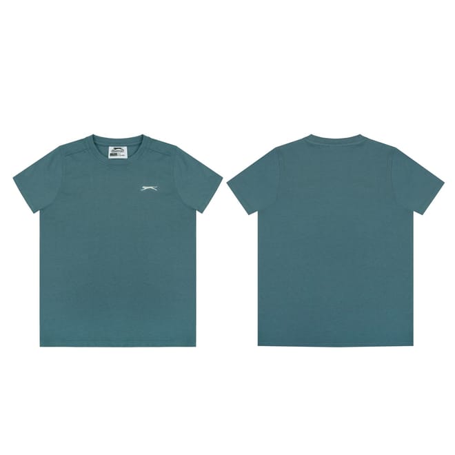 - Sport a casual everyday look with this Slazenger Plain T Shirt. Constructed with a ribbed crew neck and short sleeves for a casually classic look, this staple tee can be worn for leisure, sport or lounging around at home. The Slazenger logo is embroidered on the chest for brand recognition and block colour throughout for a simple and minimal aesthetic.