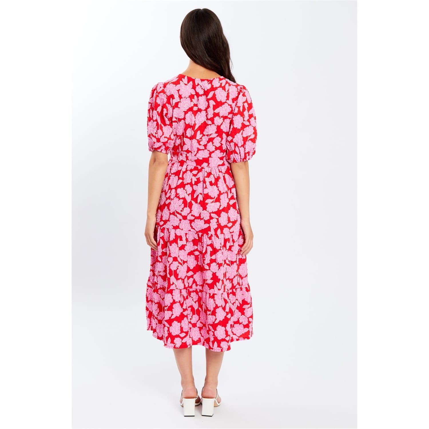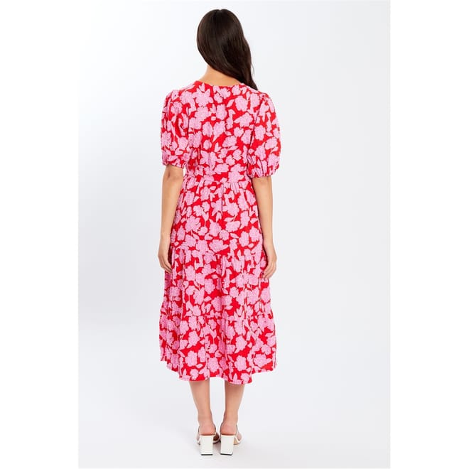 This charming midi dress from be_you is perfect for babies. Featuring a delightful floral pattern, it comes with a v-neck and three-quarter puff sleeves, adding a touch of elegance to the design. Ideal for any occasion, this dress combines style and comfort effortlessly. -