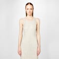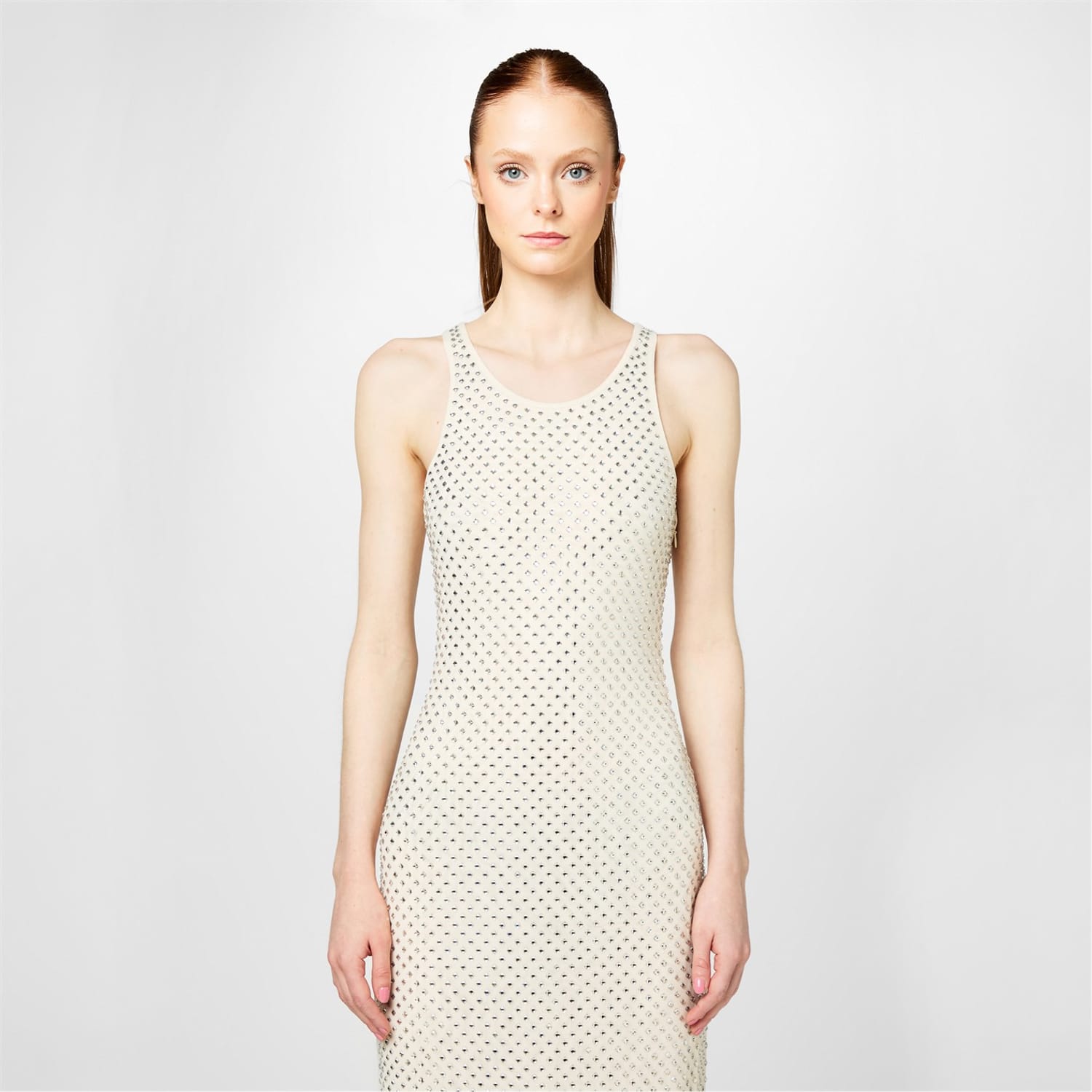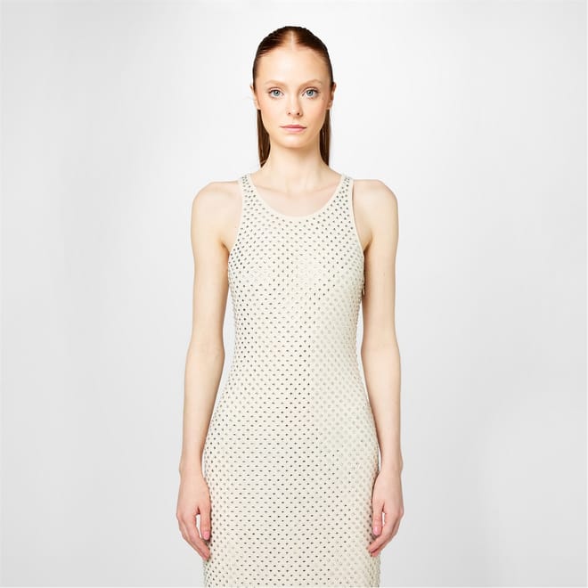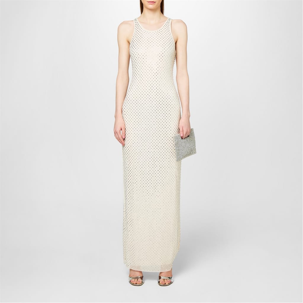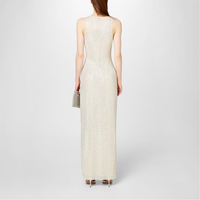 - With its contemporary racer-back and scoop neckline, this maxi dress effortlessly merges timeless glamour with modern minimalism. Designed in a maxi length for that added touch of drama, this dress is perfect for upscale events and exclusive soirées. The zip closure at the side allows for effortless wear, while the dress's full lining ensures comfort and confidence throughout the night. Designed with a nude hue, this creation offers an illusion skin look effect, elevating its appeal to an exquisite, ethereal level. Destined for memorable occasi -