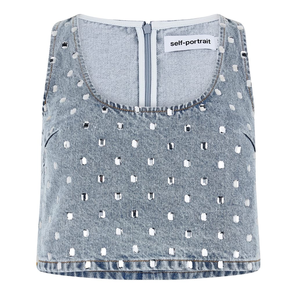Elevate your wardrobe with this self-portrait cropped tank top, featuring exquisite rhinestone embellishments. Designed in a sleeveless vest style with a scoop neck, it offers a regular fit for everyday comfort. The zipper closure adds a touch of practicality to this stylish piece. -