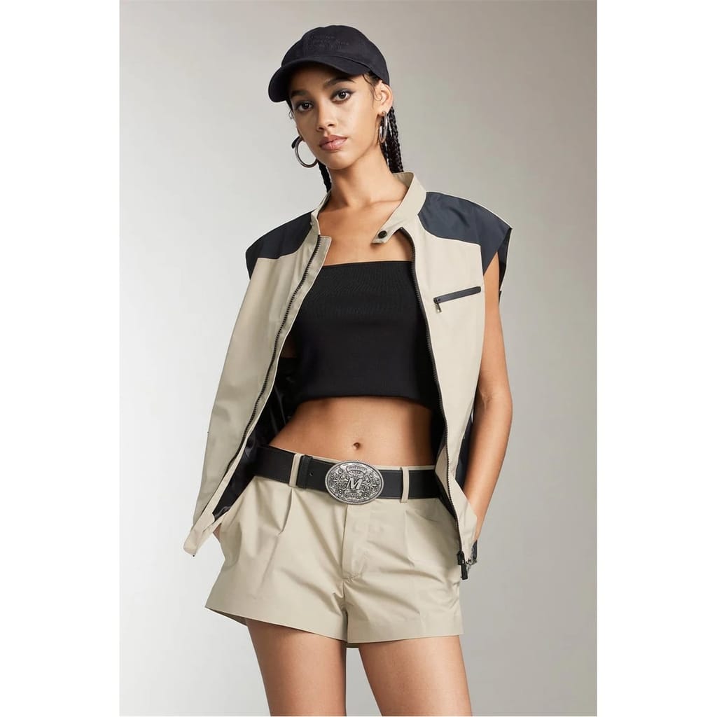 The Miss Sixty gilet jacket offers a perfect blend of style and functionality. This lightweight, sleeveless vest features a regular fit and a practical zipper closure. The solid pattern is complemented by a logo and includes a chest pocket and side pockets for added convenience. Ideal for those seeking a versatile addition to their wardrobe. -