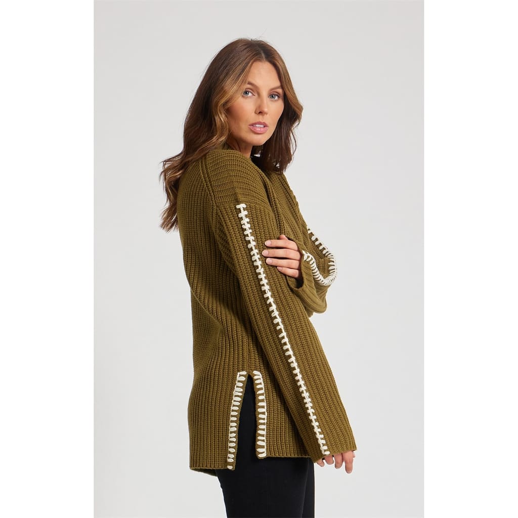 Elevate your wardrobe with this Be You sweater, designed for a relaxed fit and featuring a stylish mock neck. The sweater boasts long sleeves and is adorned with contrast stitching and a ribbed pattern, adding a touch of sophistication. The ribbed collar enhances comfort and style, making it a versatile addition to your collection. -