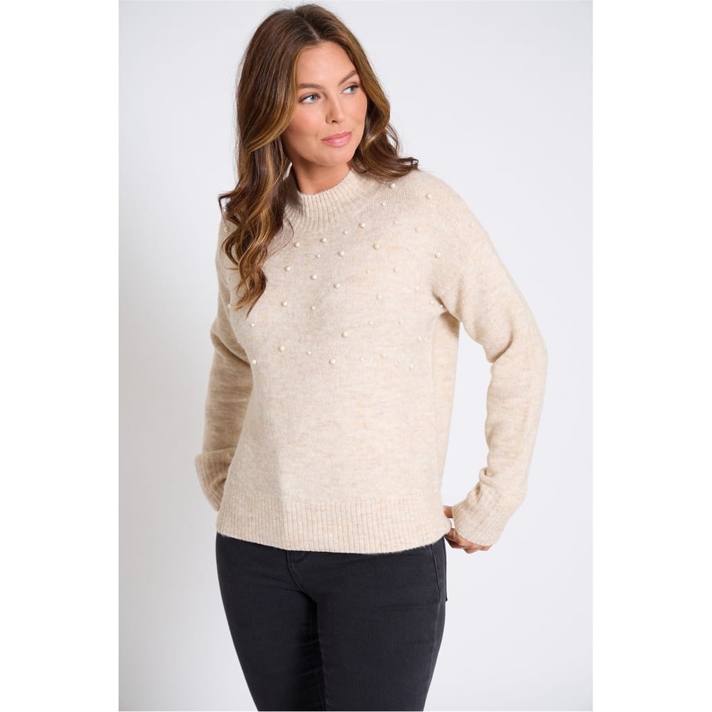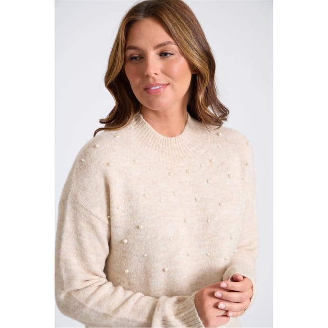 Discover the elegance of Be You cardigan sweater, designed in a regular fit. This long-sleeve top features a classic crew neck and is adorned with delicate pearl embellishments. The ribbed collar and cuffs add a refined touch, making it a versatile addition to your wardrobe. -