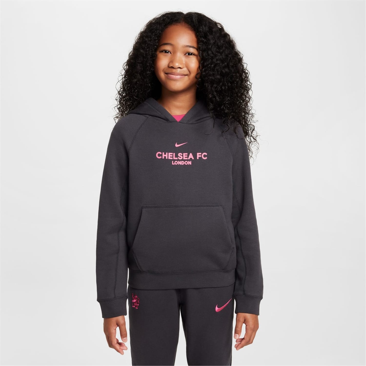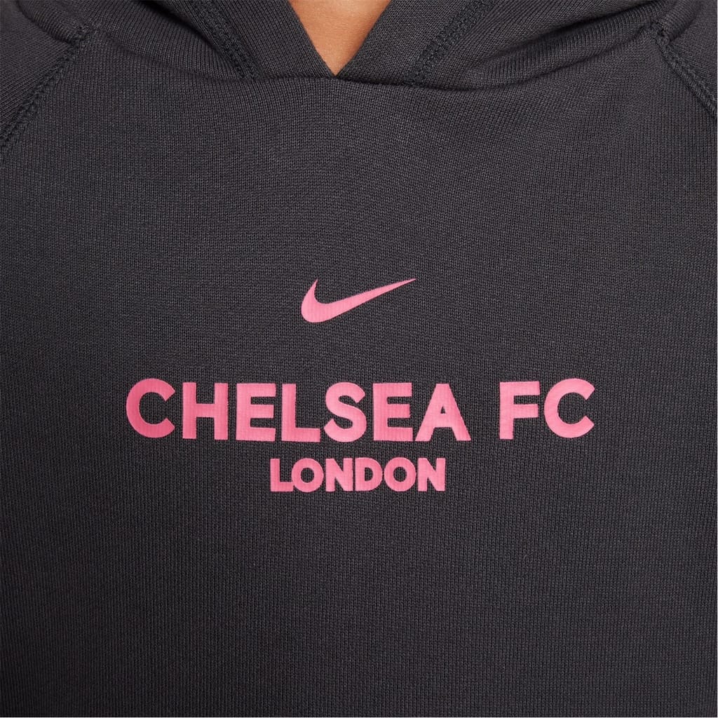 Let your youngster sport your favourite team with the Nike Chelsea Third Pullover Hoodie, featuring the iconic Nike Swoosh over the Chelsea team lettering printed on the chest. This cosy staple ensures softness for everyday adventures, from cheering at the stands to lounging at home.