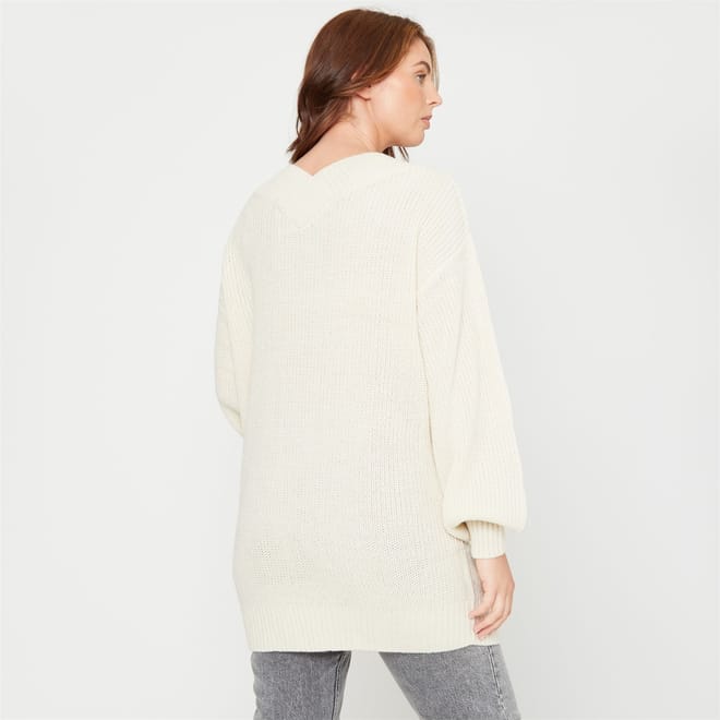 This Be You sweater is designed with a baggy fit and long balloon sleeves for a relaxed look. The V-neck adds a touch of elegance, while the ribbed cuffs provide a snug finish. Perfect for those who appreciate comfortable and stylish tops. -