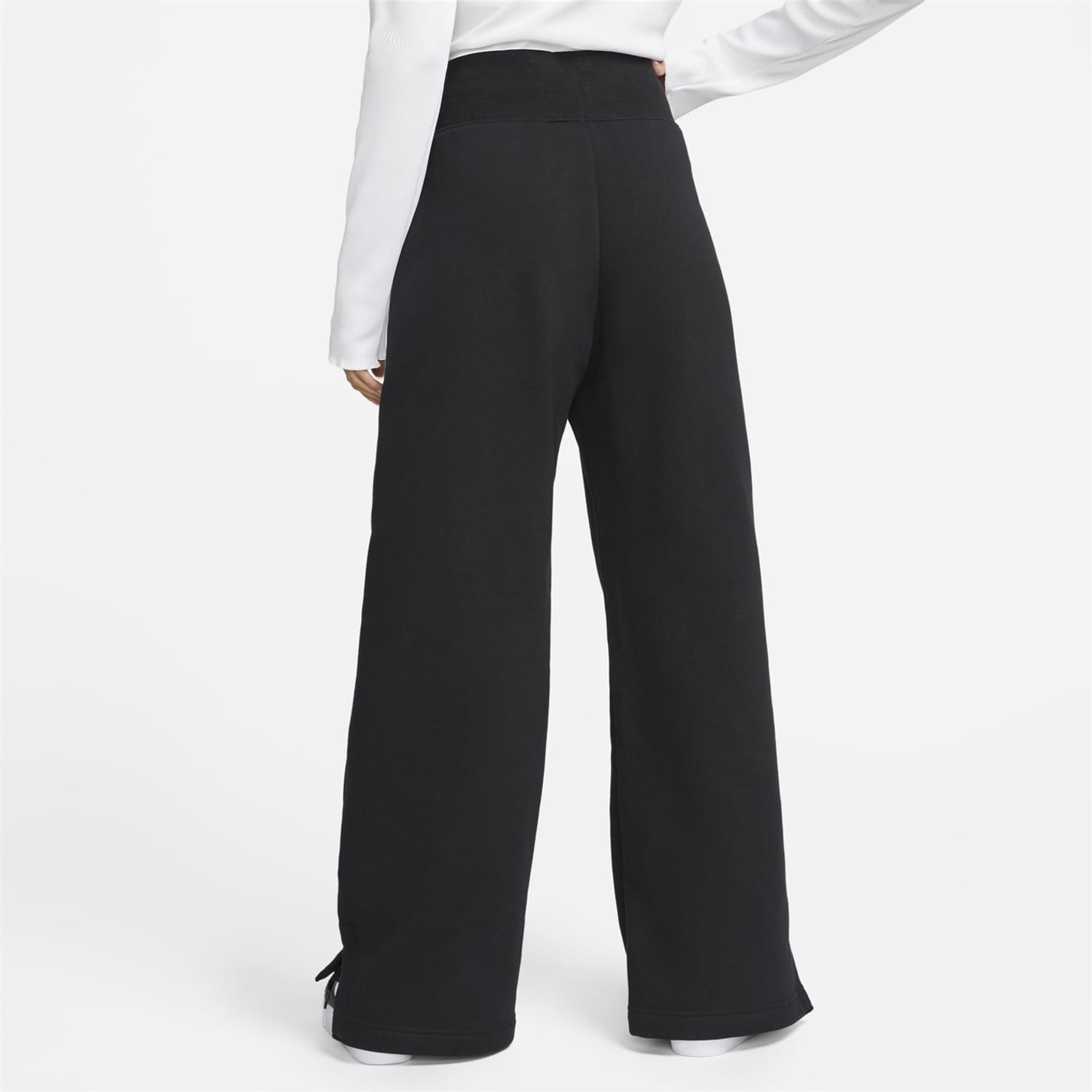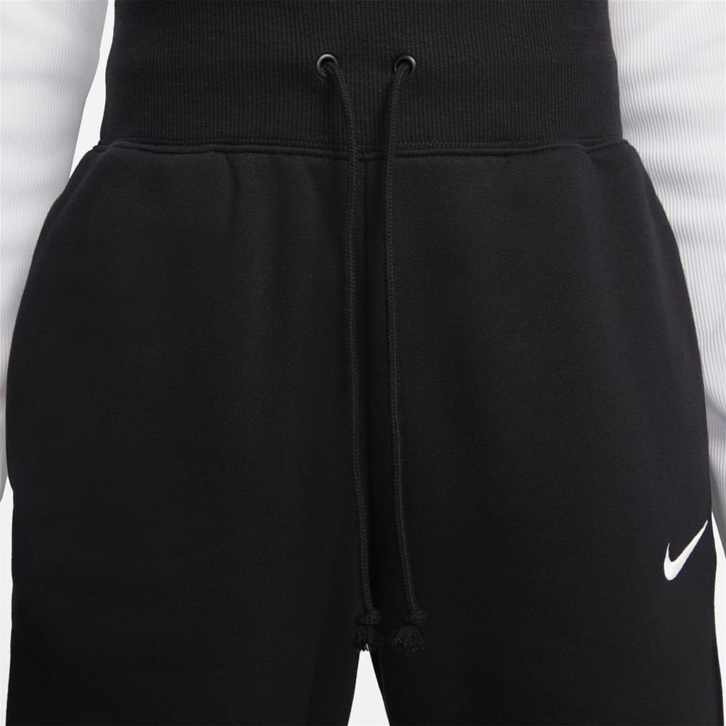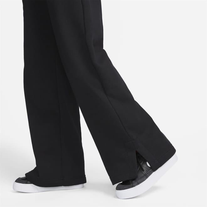 Discover Nike's high-rise sweatpants, designed for both sporting activity and casual collections. These wide-leg pants feature a drawstring closure for a comfortable fit. The iconic logo embellishment adds a touch of brand recognition, making them a versatile addition to your wardrobe. -