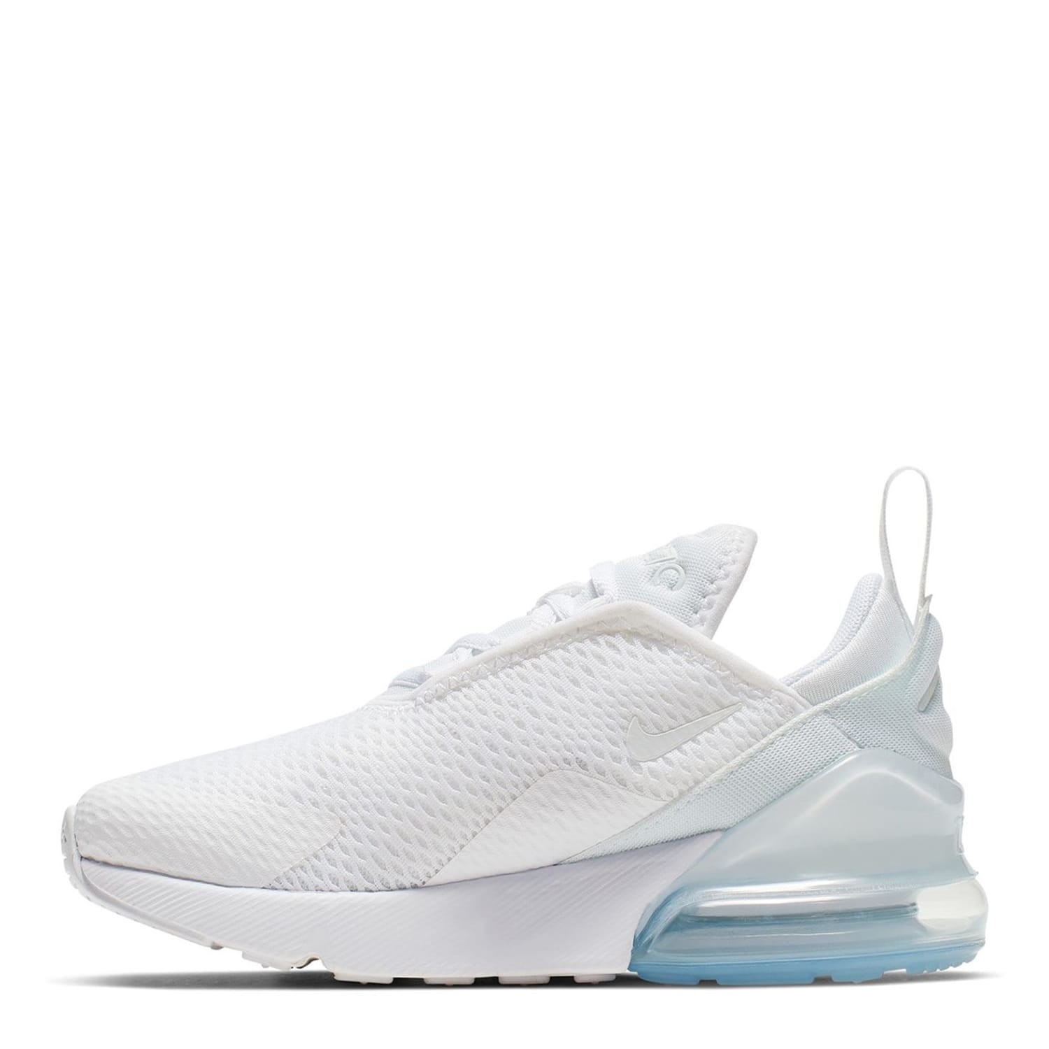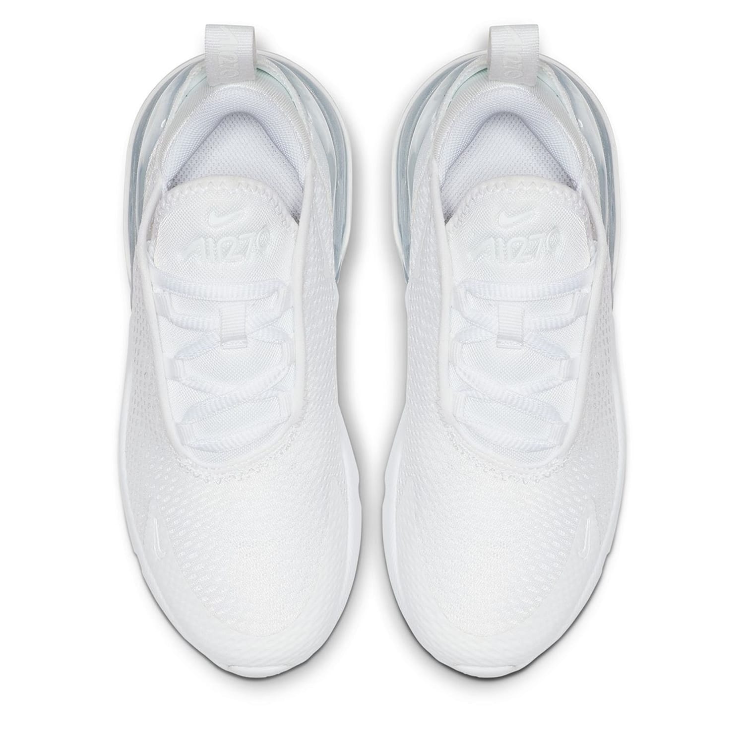 The Air Max 270 from Nike feature a large air unit at the heel to deliver responsive cushioning with every step, while the neoprene stretch bootie construction supplies a snug fit and the webbed lacing system helps lock the foot in place. The air unit is assisted by a soft foam midsole for further comfort, while the pull tab to the heel and the iconic Nike Swoosh branding completes the design. -