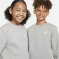 This Nike kids' sweatshirt is designed for both sporting activity and club collections. Featuring a crew neck and long sleeves, it offers a regular fit. The hoodie style is enhanced with a ribbed collar and cuffs, providing a comfortable wear. Completed with a distinct logo embellishment, this sweatshirt combines style and practicality for young ones. -