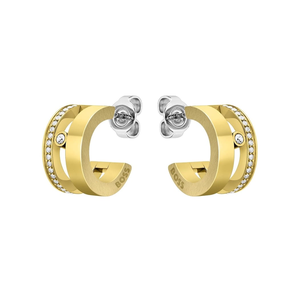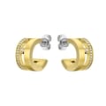 Elegant lines and curves come together in the Lyssa B collection of multi-layered pieces with understated crystal details. Two curved bars in contrasting widths are joined by a single crystal in the pendant necklace, hinge bangle, and hoop earrings, while the pendant and earrings also feature pave crystals on one side. Simple and chic, this collection can be worn day or night with ease. -