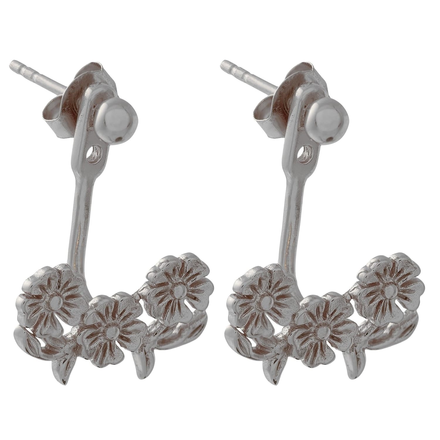 Elegant Ladies 925 Sterling Silver Floral Lace Detail Jacket Earrings. These beautifully designed earrings are the perfect accessory to your outfit day or night. -