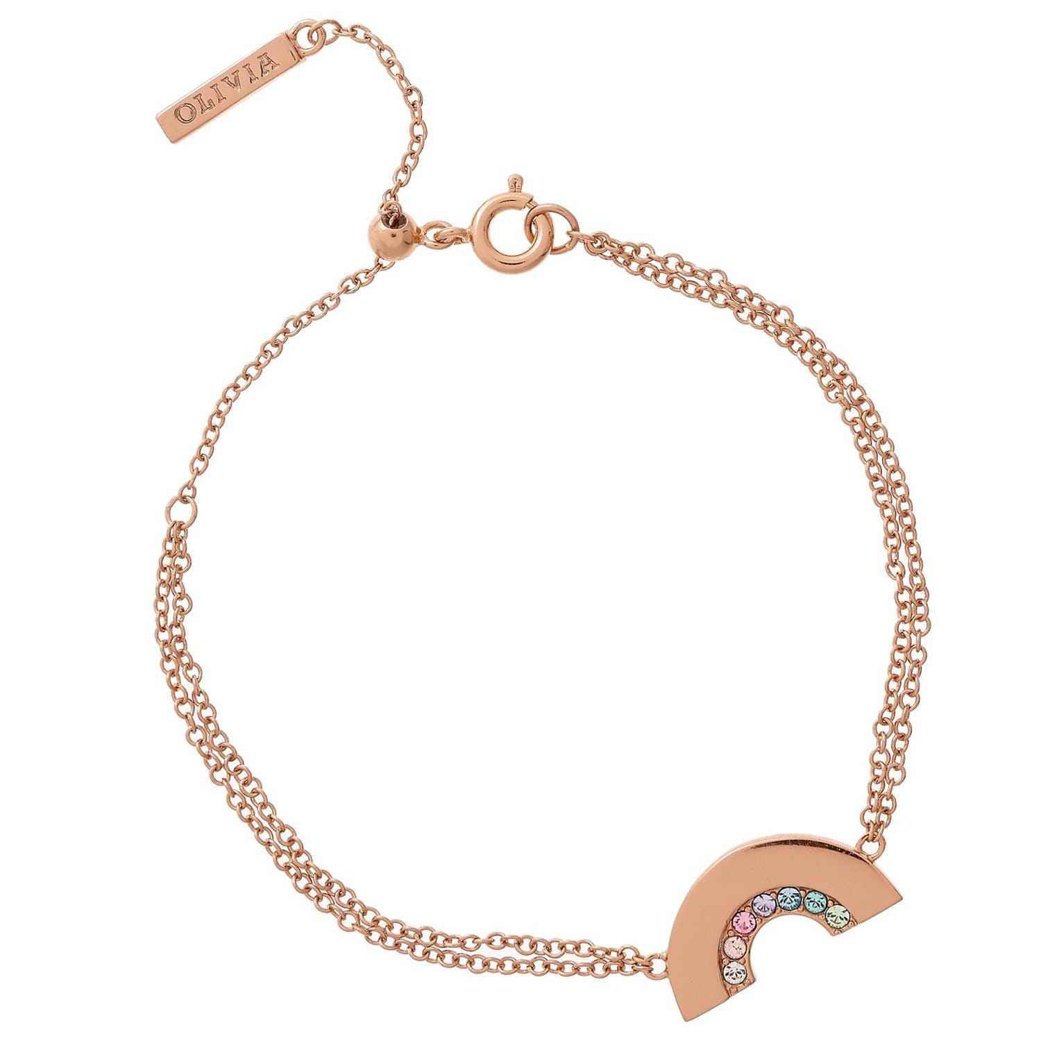 Our ever growing Rainbow family has had some super sweet additions. This adorable gold plated bracelet radiates happy vibes. FeaOur ever growing Rainbow family has had some super sweet additions. This adorable rose gold plated bracelet radiates happy vibesOur ever growing Rainbow family has had some super sweet additions. This adorable silver bracelet radiates happy vibes. Featurin. Featuring a dazzling spectrum of coloured crystals, embellished onto a delightful rainbow design, this piece is like your veryg a dazzling spectrum of coloured crystals, embellished onto a delightful rainbow design, this piece is like your very own positturing a dazzling spectrum of coloured crystals, embellished onto a delightful rainbow design, this piece is like your very own own positivity charm. Brighten up any outfit with the matching necklace and studs.ivity charm. Brighten up any outfit with the matching necklace and studs.positivity charm. Brighten up any outfit with the matching necklace and stud -