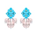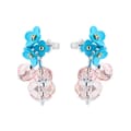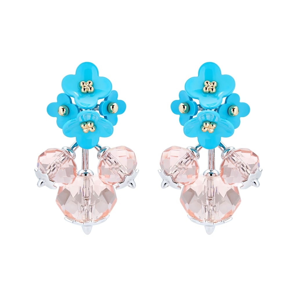 The All We Are dangle earrings feature a charming round shape with intricate floral embroidery. This jewellery piece brings a touch of elegance and sophistication to any ensemble. -