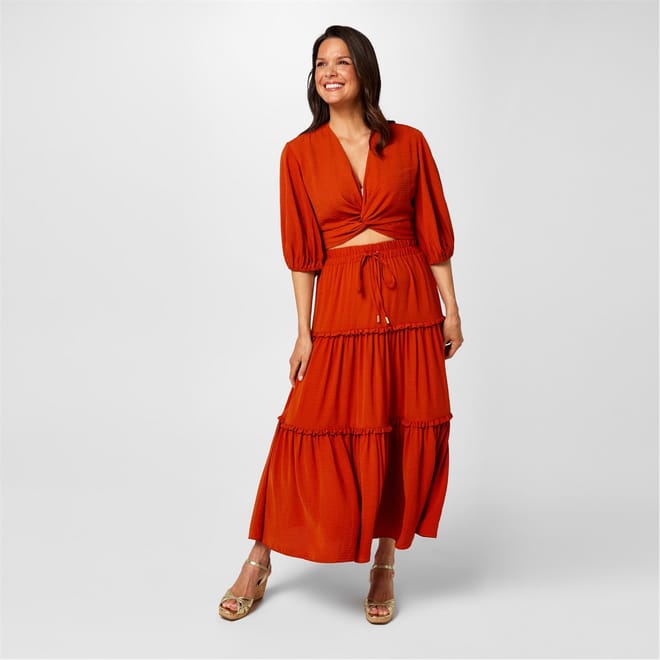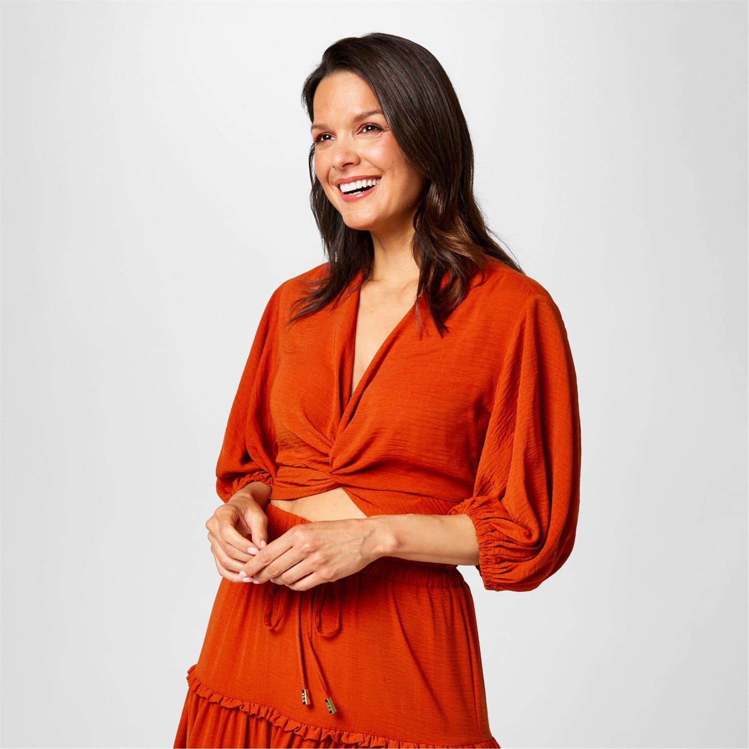 - Make a bold statement by pairing this blouse with the matching skirt. -