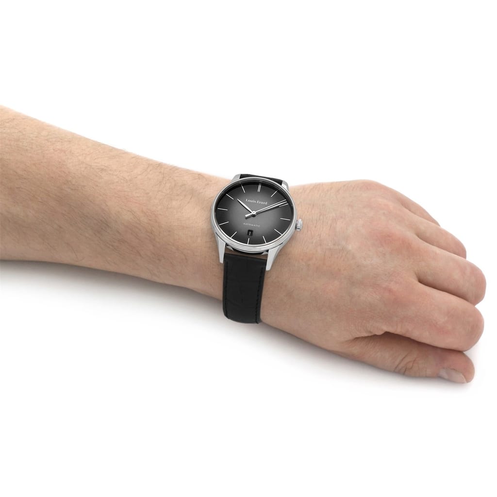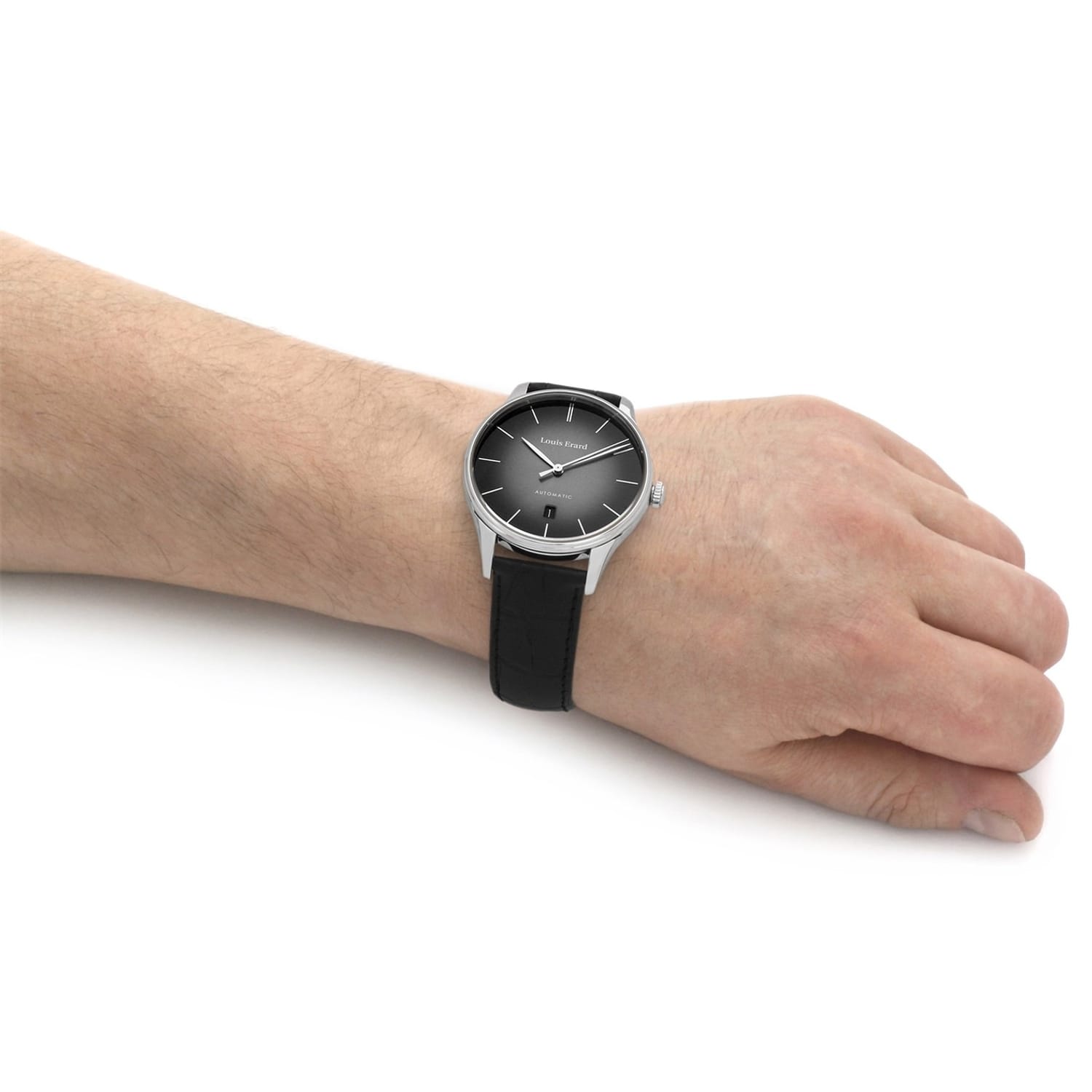 Discover the elegance of Louis Erard with this wrist watch, featuring an intense black dial that exudes sophistication. The analogue display offers a classic touch, while the leather strap ensures comfort and durability. This timepiece is a perfect blend of style and functionality, making it an ideal choice for those who appreciate timeless design. -