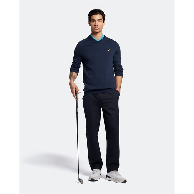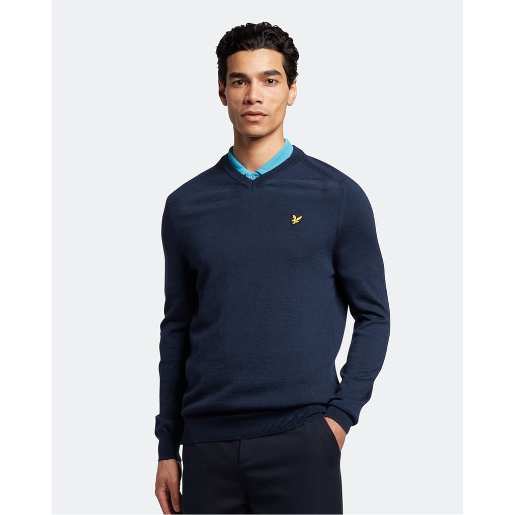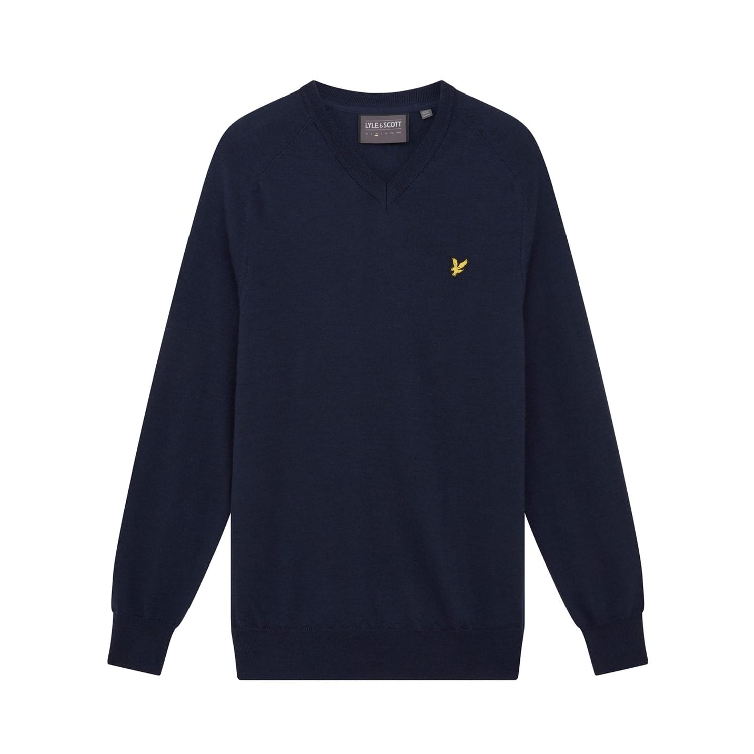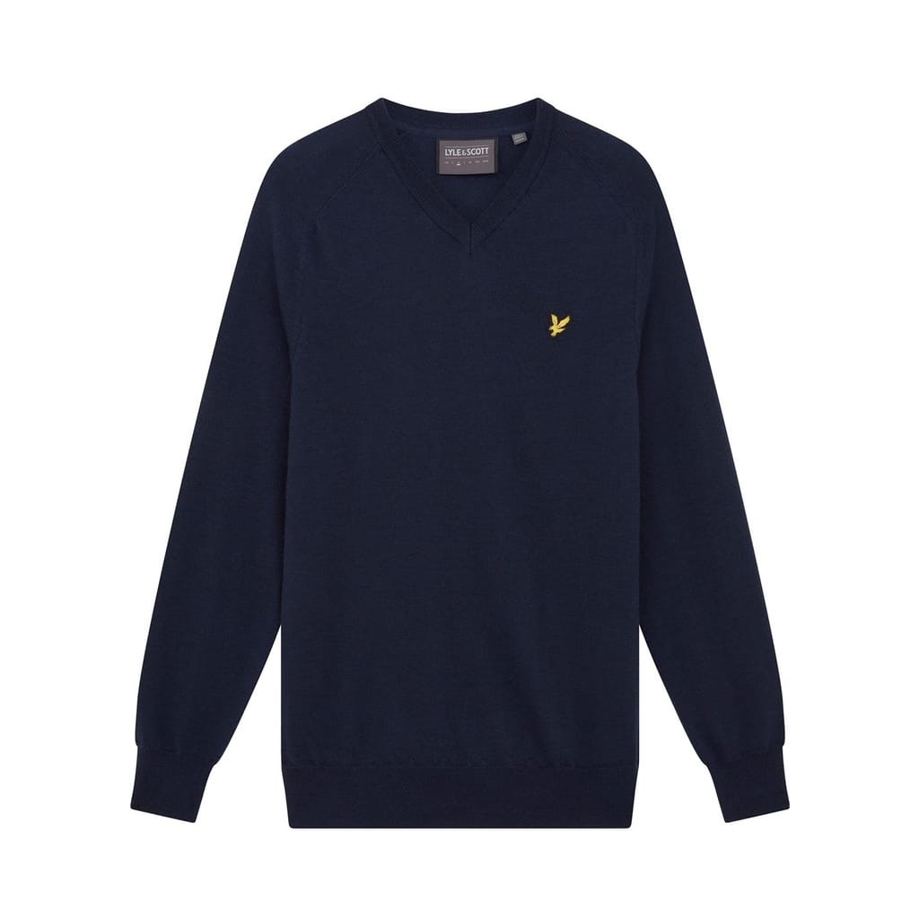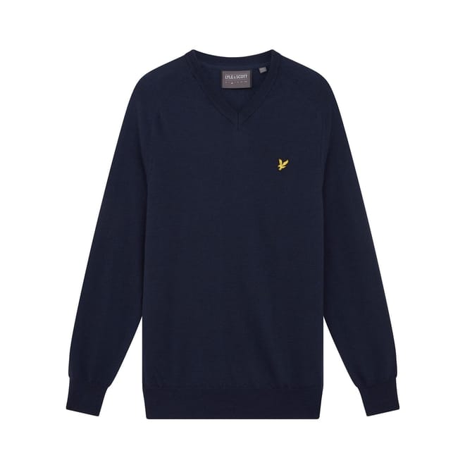 This Lyle and Scott merino sweater is perfect for spring and summer. Featuring a V-neck and long sleeves, it is crafted for a regular fit. The solid pattern adds a classic touch, while the ribbed cuffs provide a snug finish. Adorned with a logo, this premium piece from the sports direct collection combines style with understated elegance. -