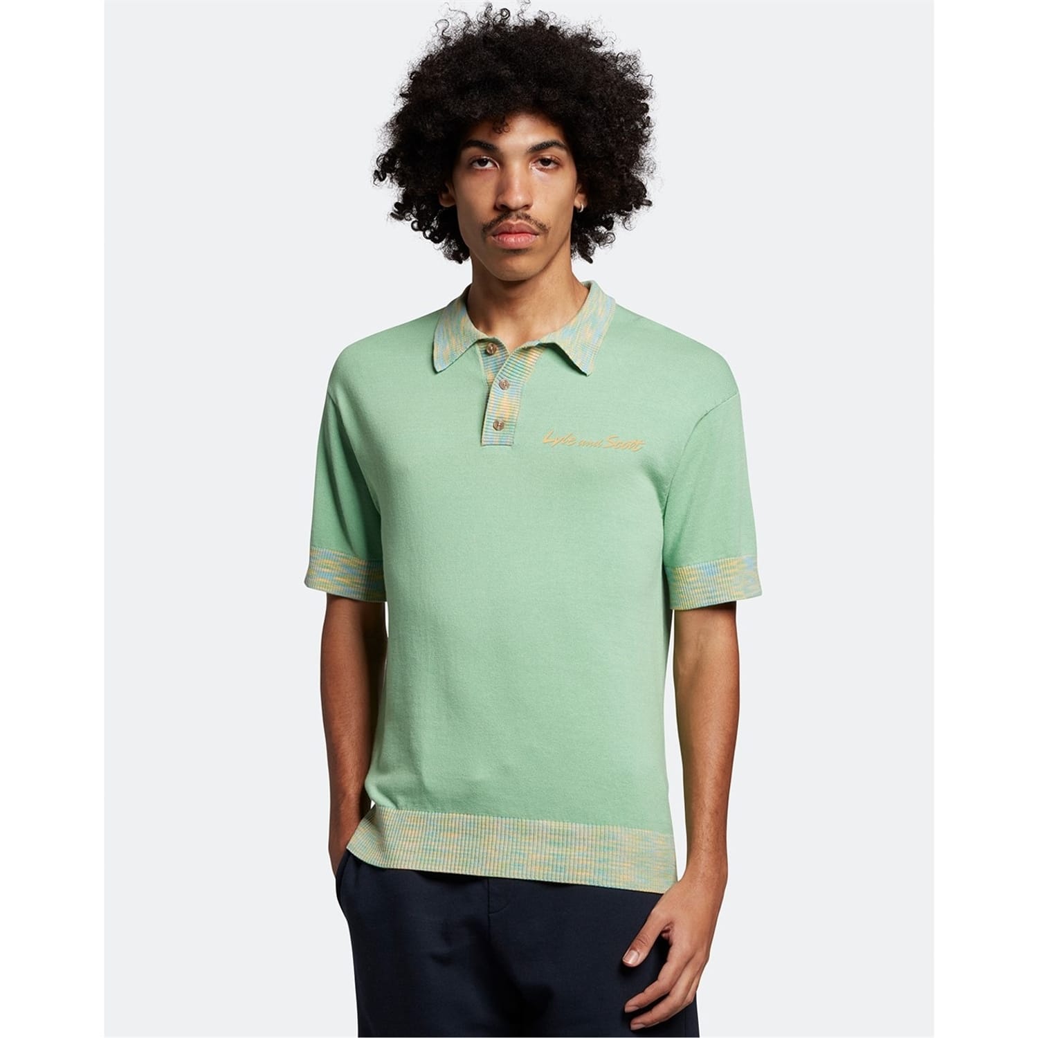 Lyle & Scott's polo shirt is a semi-formal top featuring short sleeves and a polo collar. Made from knit fabric, it offers a regular fit with a button closure and ribbed cuffs. The solid pattern is enhanced by an embroidered logo for a touch of sophistication. -