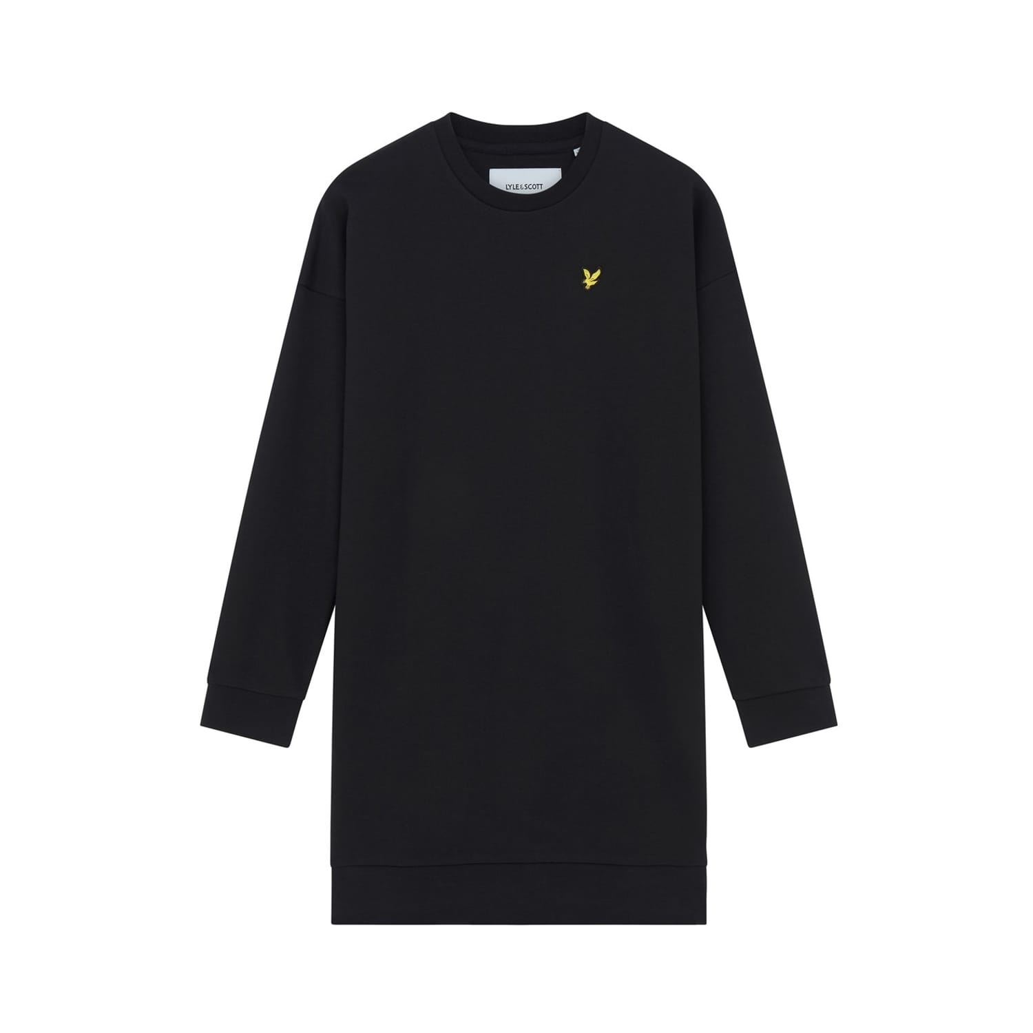 Lyle & Scott mini sweatshirt dress features a hooded neckline and long sleeves. With a straight hem and solid pattern, this dress combines comfort and style. The iconic logo adds a subtle touch of branding to this casual yet chic piece. -