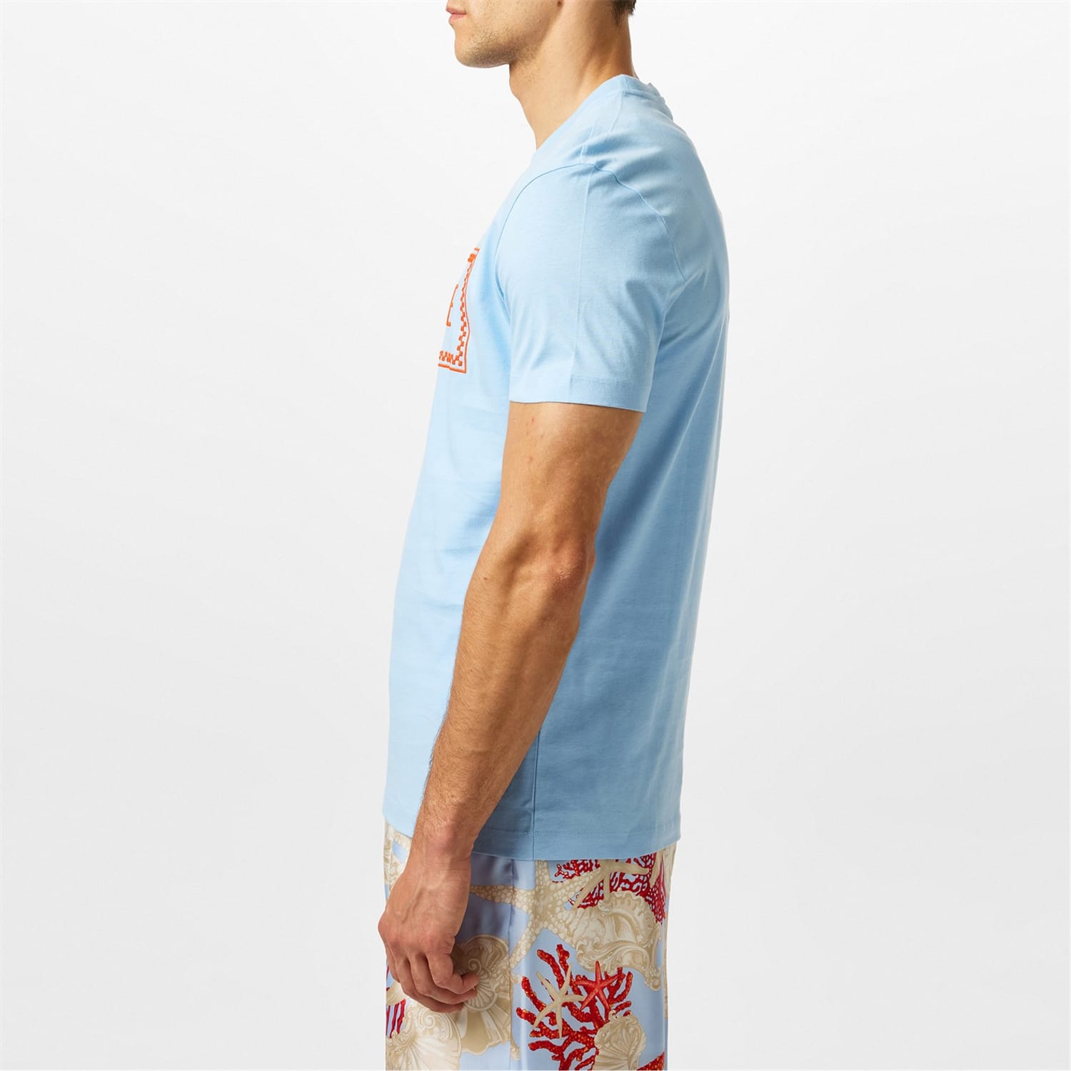 This Versace T-shirt is a staple from the casual collection. Featuring a crew neck and short sleeves, it offers a regular fit for comfort. The distinctive logo print adds a touch of sophistication, making it a versatile addition to your wardrobe. -