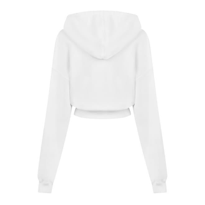 This Off-White cropped hoodie sweatshirt is a stylish choice for those who appreciate modern fashion. Featuring a hooded neckline and a drawstring closure, it offers a relaxed fit with a drop shoulder design. The long sleeves are complemented by ribbed cuffs. The sweatshirt is adorned with an embroidered graphic print, adding a unique touch to its overall design. -