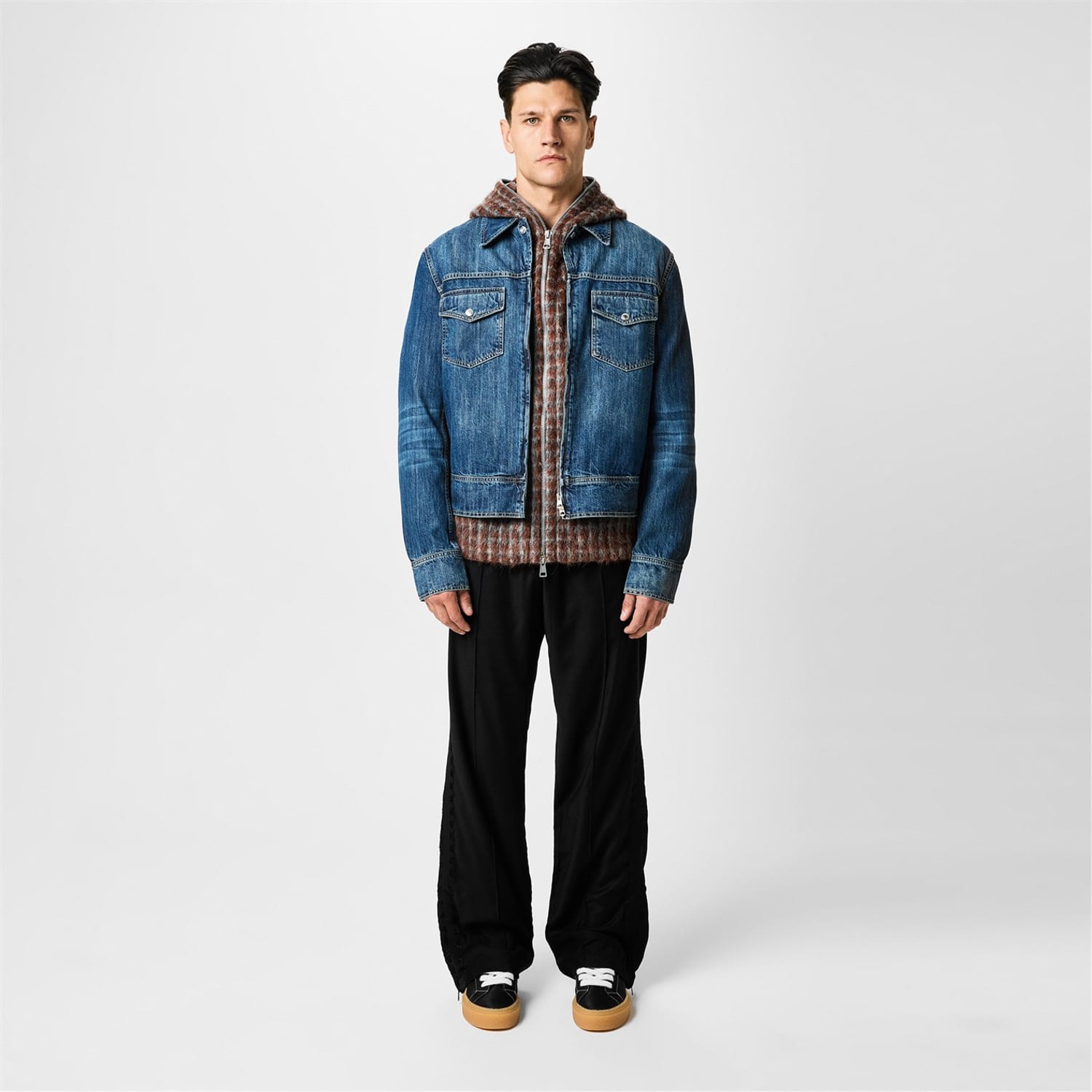 - Sleek indigo colourway with contrasting tobacco topstitching creates a classic denim silhouette.