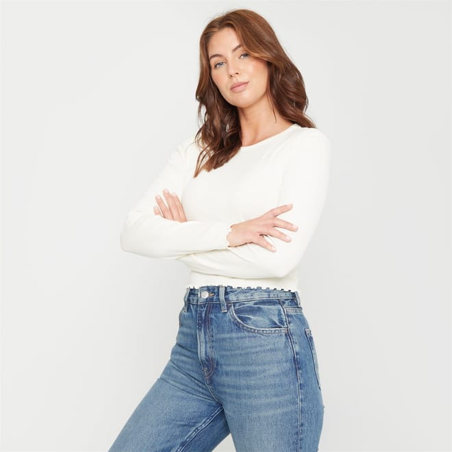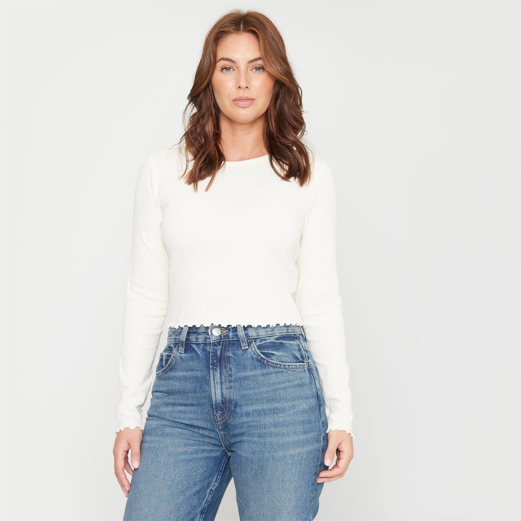 Elevate your style with Be You ribbed t-shirt, featuring a crew neck and long sleeves for a classic appeal. This regular fit top showcases a cropped length, adding a contemporary twist to its timeless design. Perfect for a chic yet comfortable look, the ribbed cuffs enhance the texture and style, making it a versatile addition to any wardrobe. -