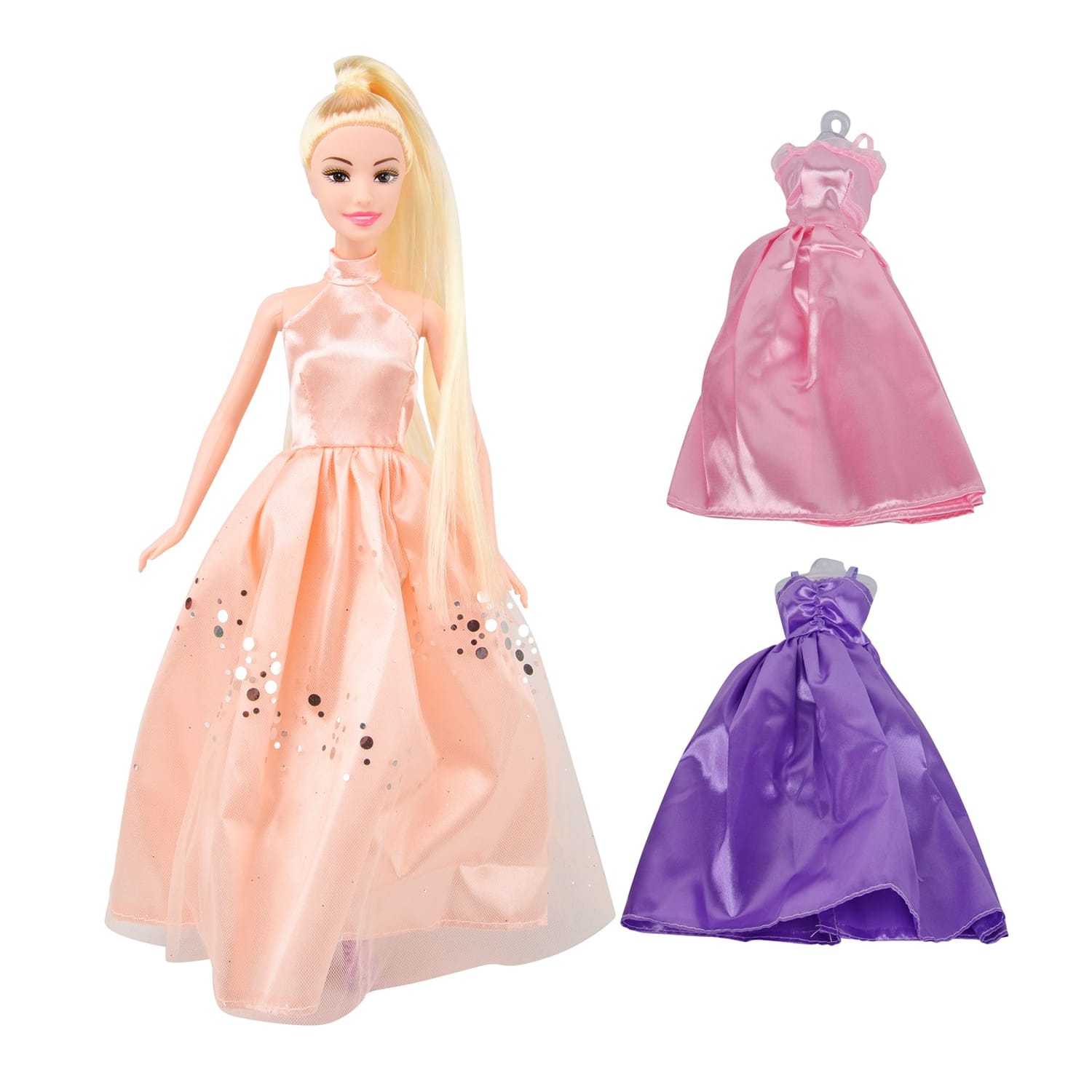 Unlock the door to a magical world where fashion and fantasy come together. Let your child’s imagination soar with our 3 Dresses Party Pack for Princess Dolls – a perfect addition to any doll collection. Watch as they create their own fairy tales, dressing their princesses for grand balls, royal picnics, and every adventure in between.