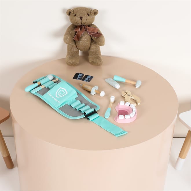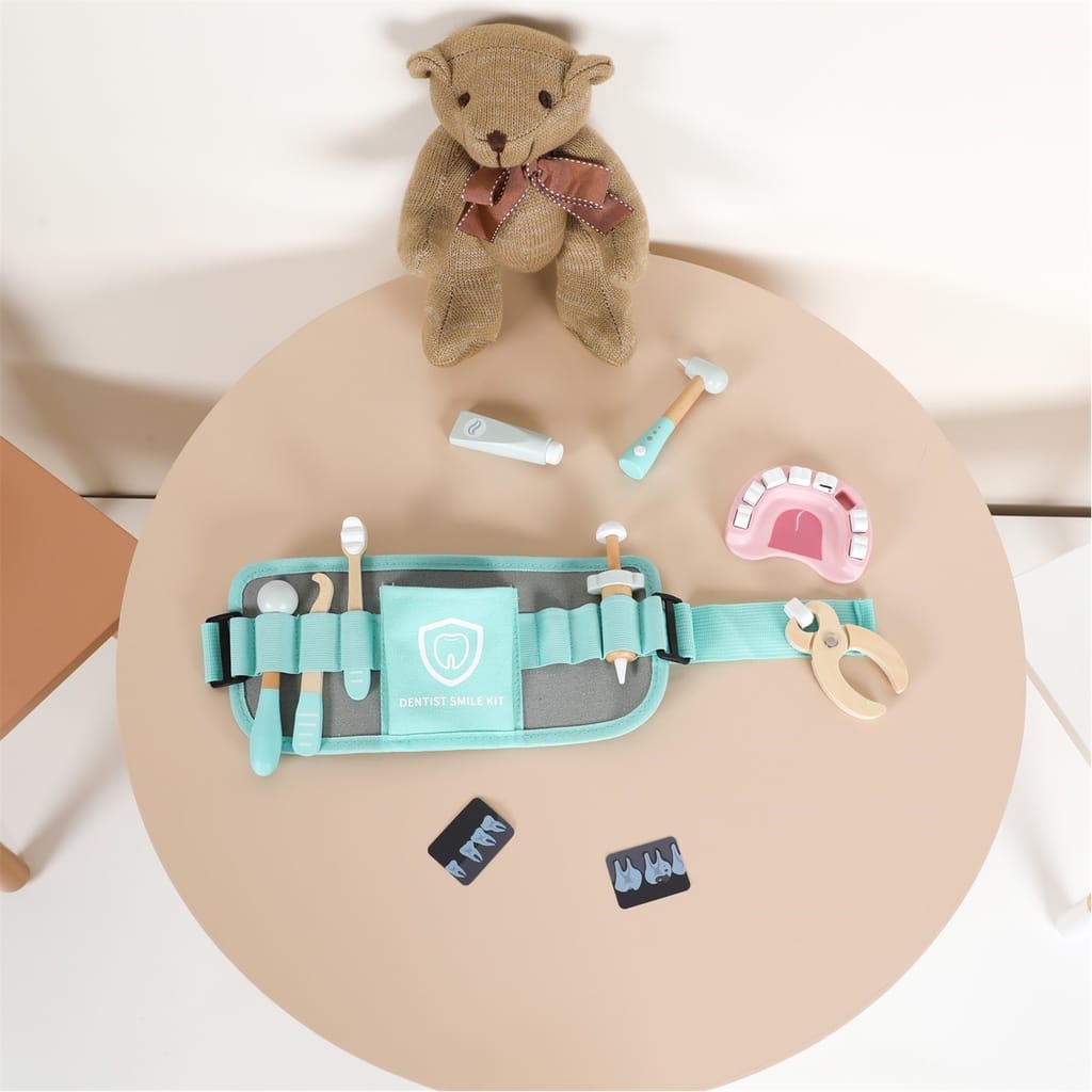 This beautifully-crafted dentist tool belt playset offers a delightful and educational playtime experience for aspiring young dentists. It provides a safe and engaging way for kids to explore the world of dental care through imaginative role-playing.