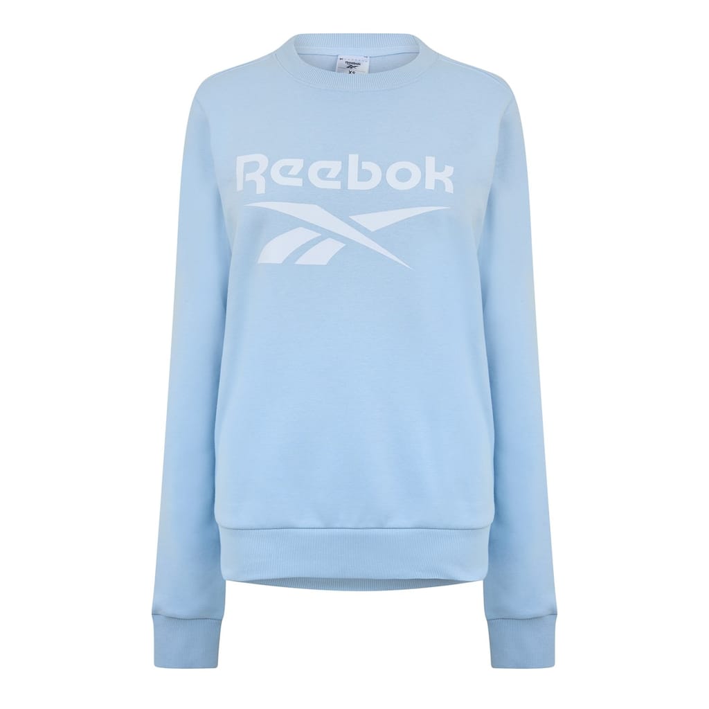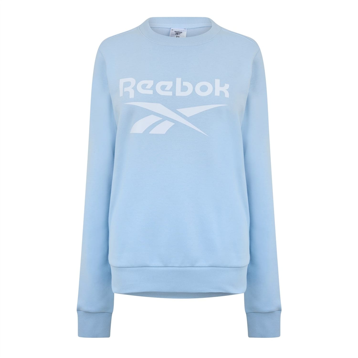 This Reebok cropped sweatshirt features a crew neck and long sleeves. It has a regular fit and ribbed cuffs for added comfort. The solid design with a graphic logo embellishment creates a stylish look. Perfect for a casual and sporty outfit. -