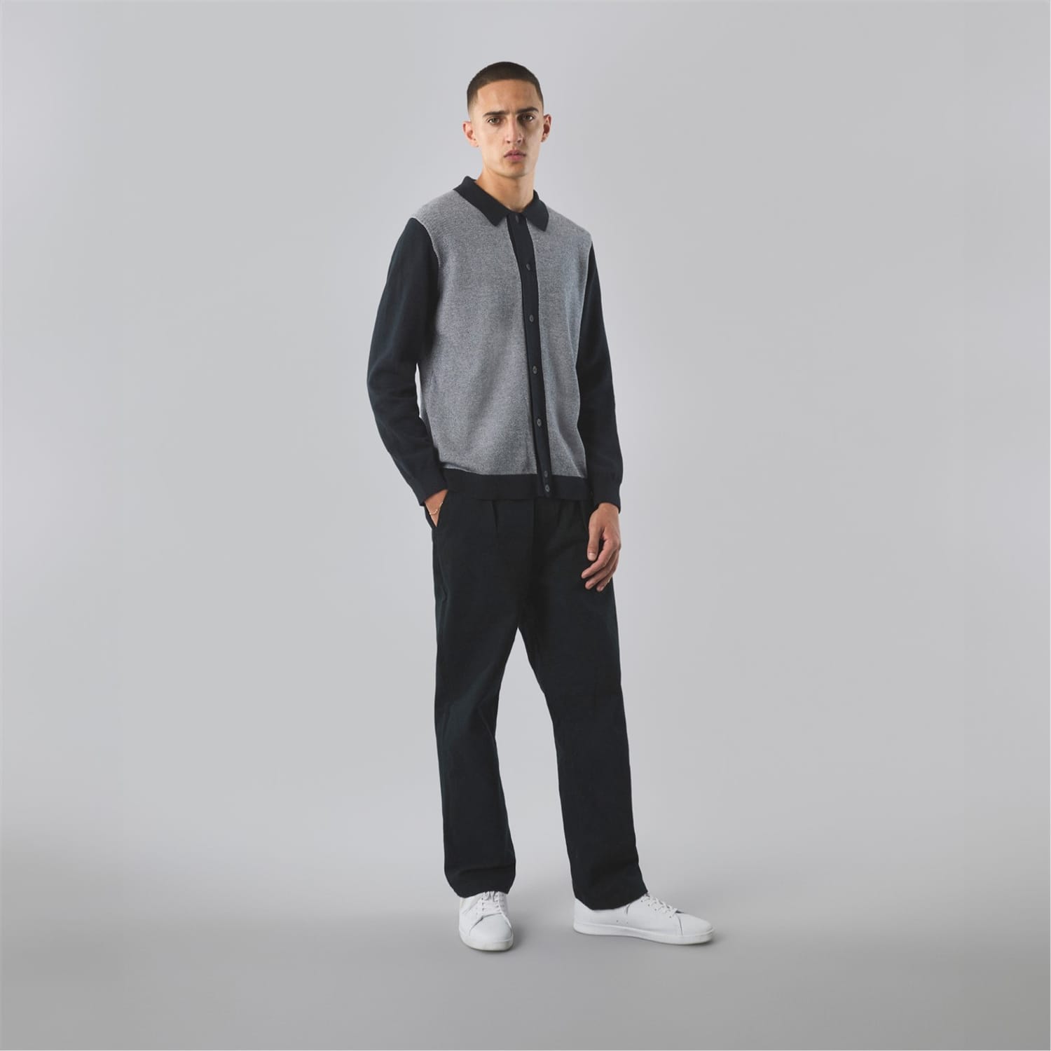 This Pretty Green long sleeve cardigan blends classic sweater style with the casual appeal of a polo shirt. Crafted with knit fabric, it features a shirt collar and button closure for a smart, regular fit. The ribbed cuffs add a touch of structure, making it a versatile addition to any wardrobe. -