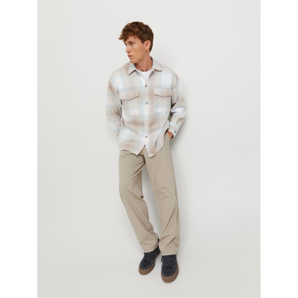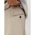 The chino pant is an essential style for this category. It is the in between of a dress pant and a casual 5 pocket styling. It's a plain styling, with front and back pockets only.