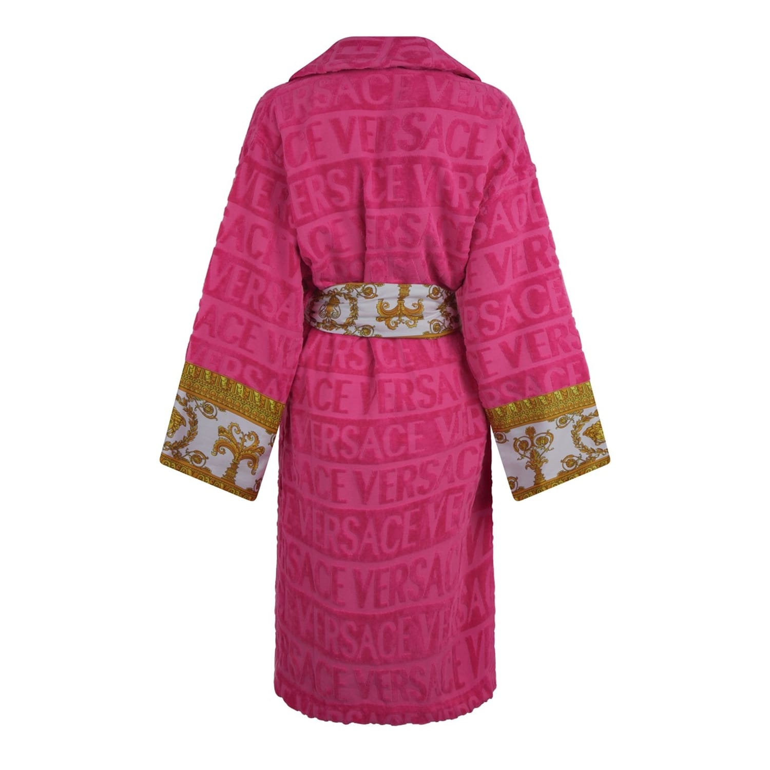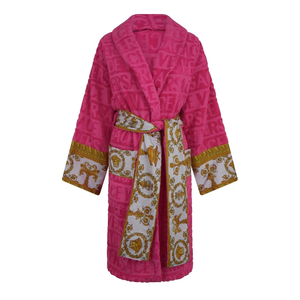 Lounge in ultimate luxury with this baroque robe from Versace Home. Beautifully soft to the touch, the Versace robe features an all-over repeating baroque print and is enhanced with printed borders that feature the iconic Medusa head motif.