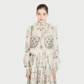 - Composition: 87% polyester, 8% silk, 5% polyamide; trim: 44% viscose, 36% cotton, 20% acetate; lining1: 100% polyester; lining2: 100% cotton