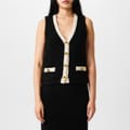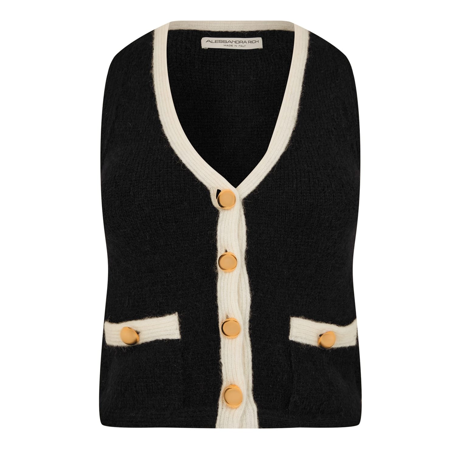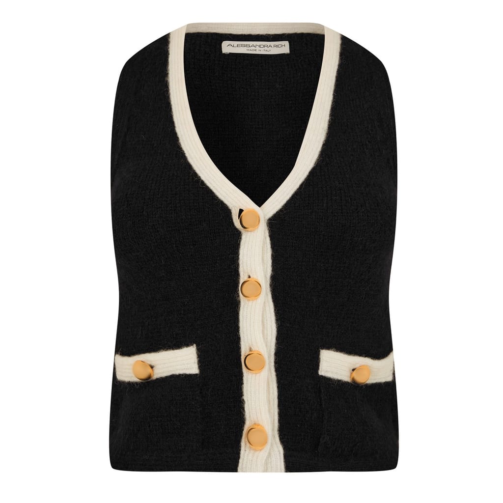 Step into sophistication with Alessandra Rich's Vest, where every detail speaks volumes about your style. The fine knit and contrasting colour trims adorned with gleaming gold-tone buttons elevate your look with effortless luxury. Whether it's a business meeting or a stylish evening event, this vest adds a touch of refinement that sets you apart.