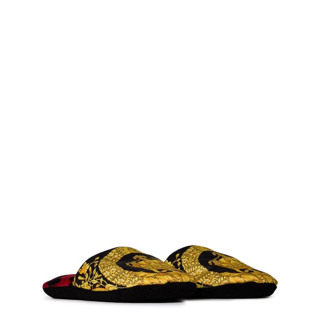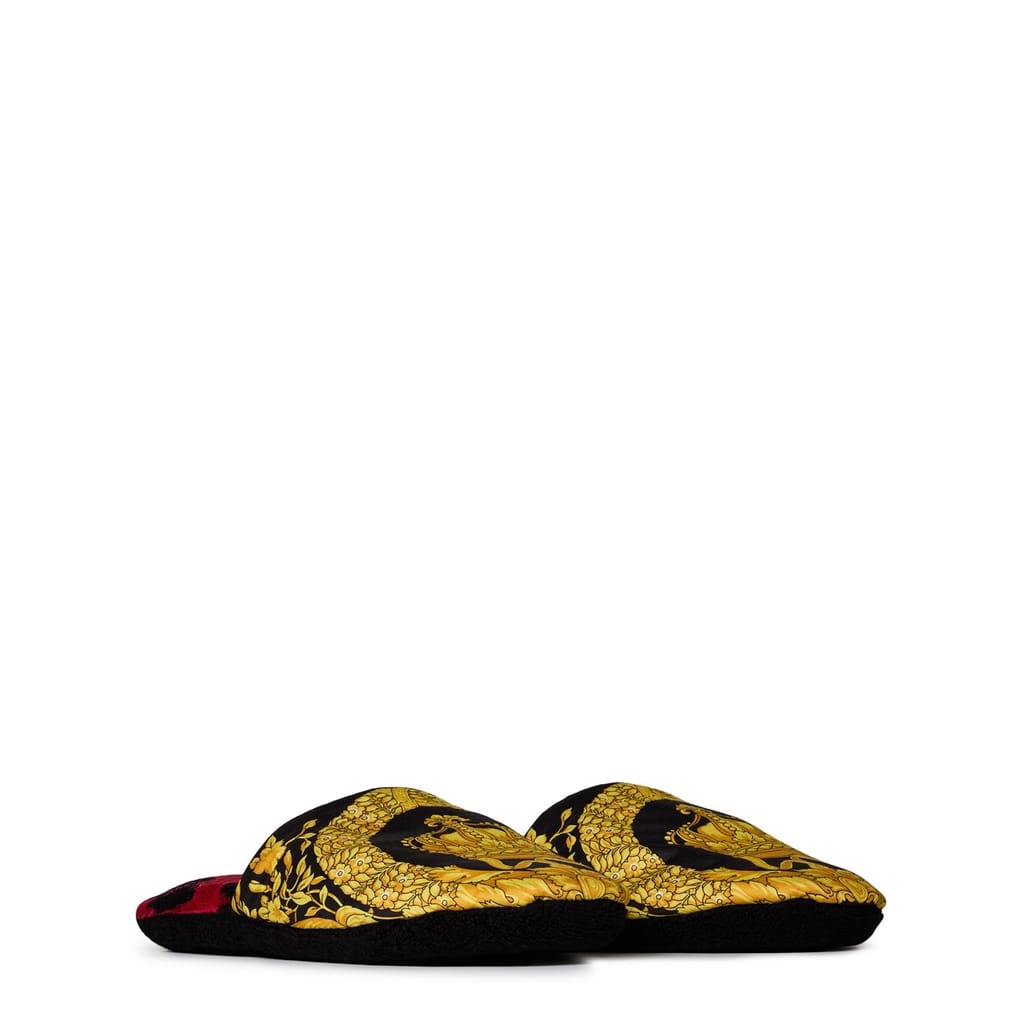 These slippers feature cotton uppers with Barocco motifs and soft terry towelling insoles with a leopard pattern.