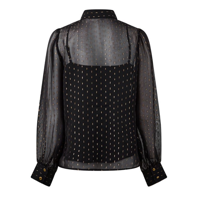 Add a touch of autumn sparkle to your wardrobe with the Biba Metallic Shirt. This chic chiffon shirt features a stunning metallic gold pattern, complemented by Biba branded buttons for an extra touch of elegance. Complete with a removable cami, this versatile piece effortlessly transitions from day to night, offering a range of stylish outfit options. Made from lightweight chiffon, the shirt boasts a beautiful metallic gold pattern that catches the light, making it perfect for both daytime sparkle and evening glam.