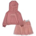 This Miso top & skirt set for infants features a casual style with a relaxed fit. The sweatshirt is a hoodie with a drop shoulder design and long sleeves, offering a comfortable pull-on closure. It has a straight hem and is adorned with logo lettering. The accompanying A-line skirt completes the set, making it a practical choice for little ones. -