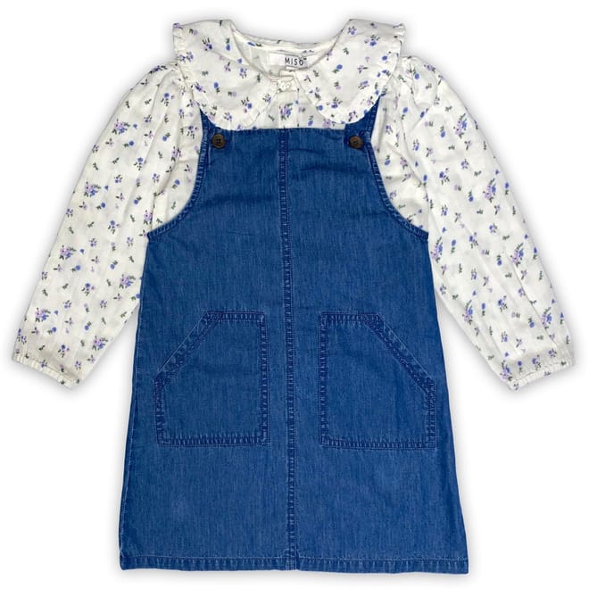 This Miso dress is perfect for infants, featuring a charming floral pattern. The knee-length A-line design is complemented by a club collar and collared neck, adding a touch of elegance. Long puff sleeves and a button closure enhance its classic appeal, while the regular fit ensures comfort. Practical pockets complete this delightful piece. -