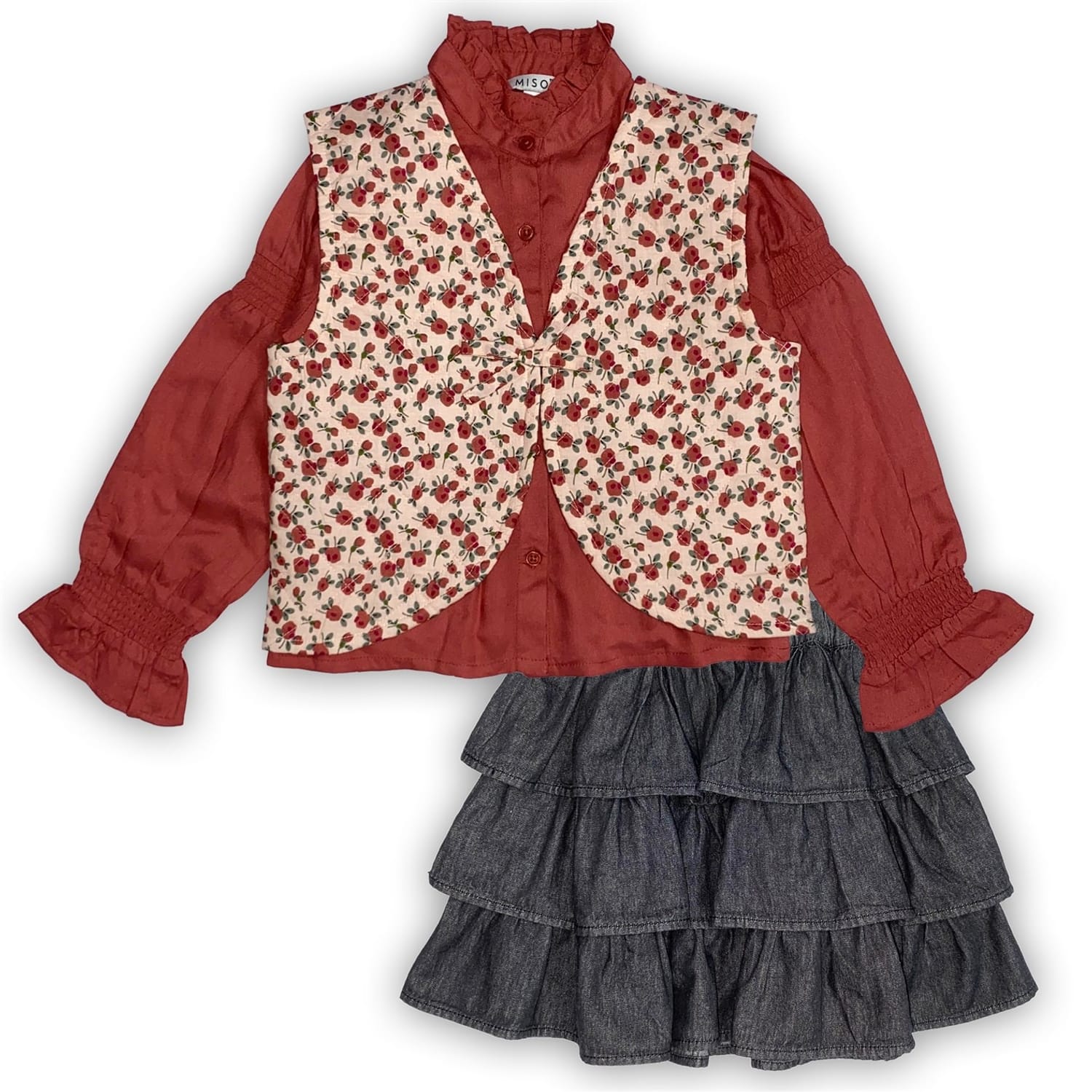 Elevate your wardrobe with this Miso top & skirt set. The casual blouse features long ruffle sleeves, adding a touch of elegance to the regular fit. The floral pattern enhances its charm, while the tiered skirt style offers a playful silhouette. Perfect for those seeking a stylish yet comfortable ensemble. -