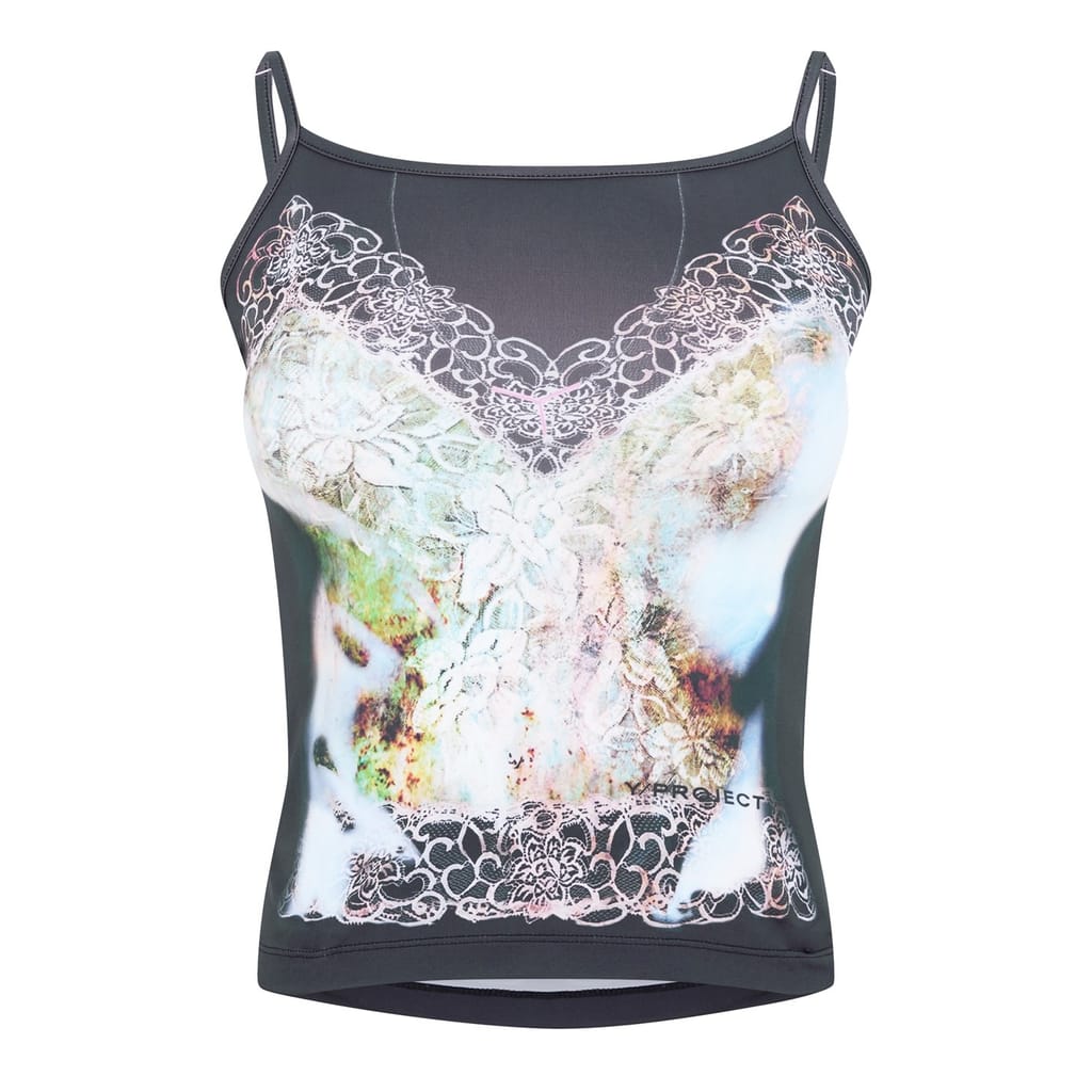 Make a bold statement on any occasion with the Y/Project Lace Print Tank Top, an exquisite creation that demands attention. Crafted with the Y/Project's unique take on traditional femininity, the Lace Print Tank Top features a captivating graphic print on the front mimicking the intricate shape and delicate look of lace camisole. This brilliant fusion of modern styling and classic silhouettes presents a unique take on a wardrobe staple that is sure to set you apart from the crowd.