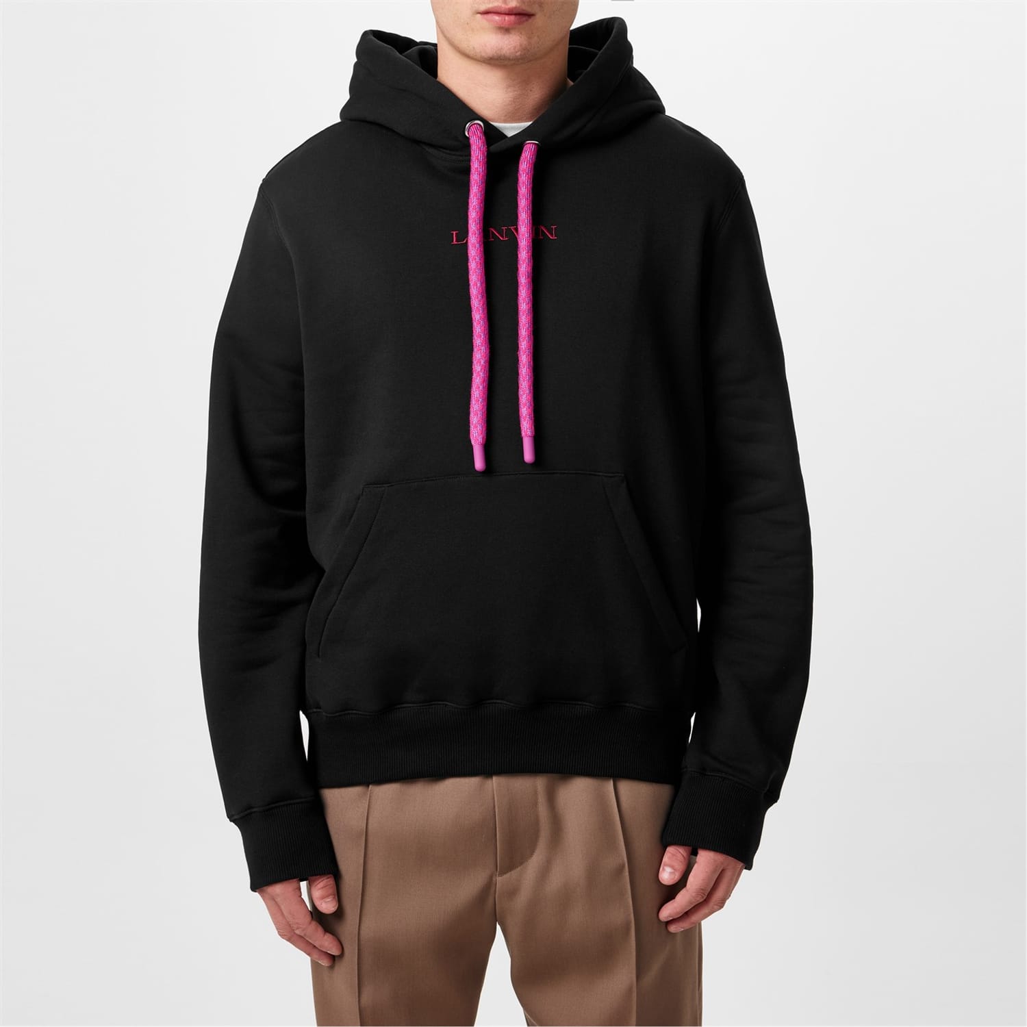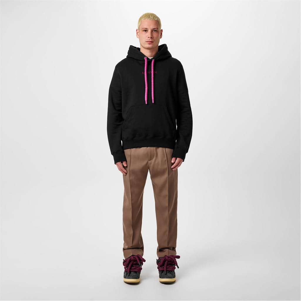 This Lanvin hoodie sweatshirt is designed with a hooded neckline and a drawstring closure for adjustable comfort. It features long sleeves with ribbed cuffs and a regular fit, perfect for a relaxed style. The sweatshirt includes a kangaroo pocket and is embellished with embroidered details, adding a unique touch to your casual wardrobe. -