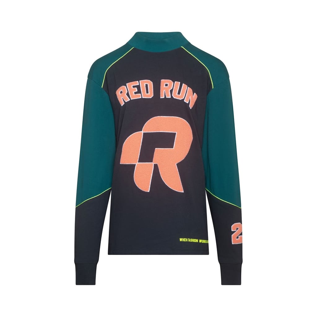 Unleash your casual style with Red Run long-sleeve T-shirt. Featuring a classic crew neck and raglan sleeves for a sporty touch, this regular fit top is adorned with a striking graphic print. The ribbed cuffs and collar add a refined finish, while the logo embellishment adds a signature touch. Perfect for laid-back outings, this top is a versatile addition to your wardrobe. -