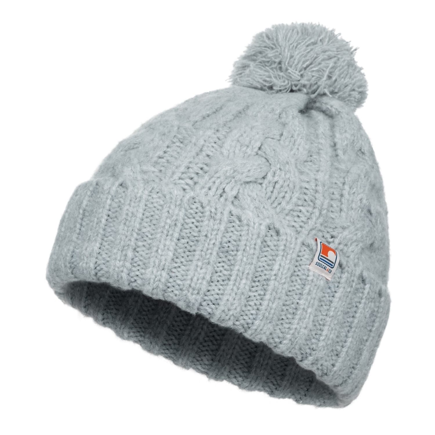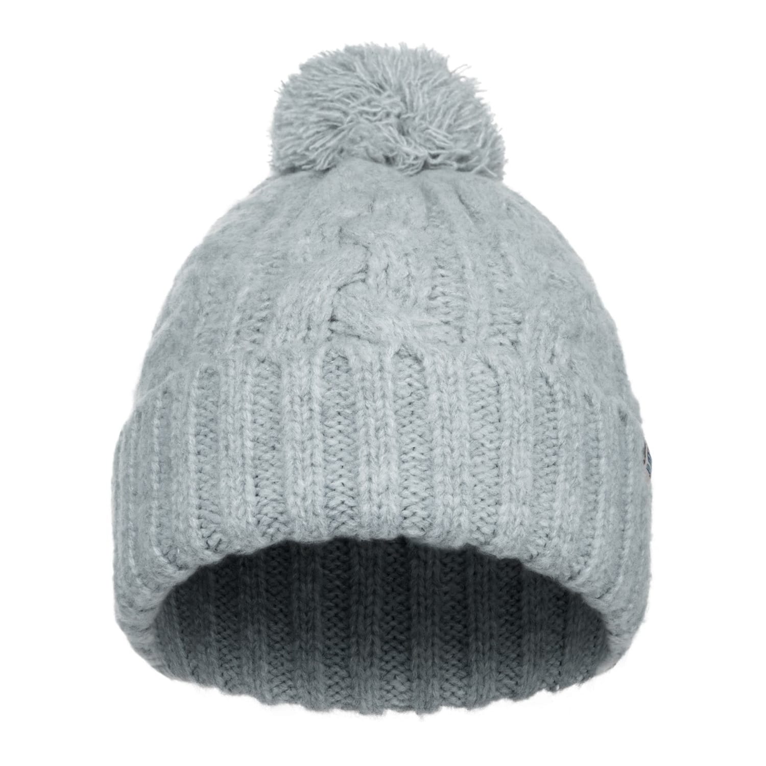 - Free cable knit hat made of wool blend yarn, with round up and rich pompom