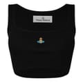 Designed for both casual and stylish occasions, the Vivienne Westwood Bea Bra Top is an elevated staple perfect for everyday wear. Crafted in Italy from a blend of organic and recycled cotton, this bralette features a ribbed-knit finish, artfully enhanced with added stretch for a supportive and close fit. The super cropped silhouette, coupled with a sleeveless design and a chic scoop neckline, seamlessly fuses timeless style with contemporary allure.